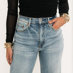 The cool girl jean, Far Out is a baggy and modern silhouette in a versatile light to medium wash with scissor cut hems. Constructed in our Just Right denim, it makes every pair look like an authentic vintage fit - it's mostly rigid but yields to your body in all the right ways.