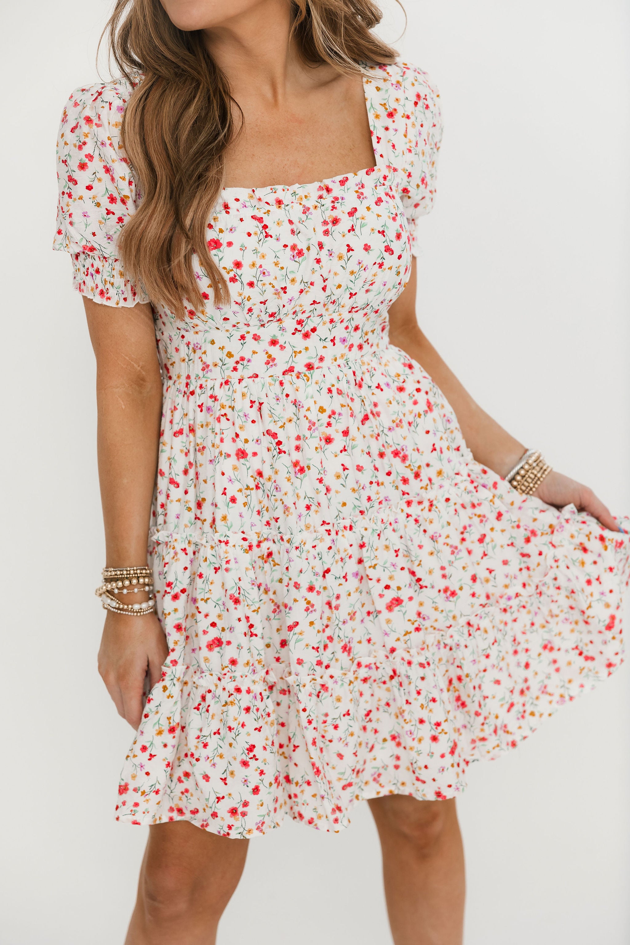Sweet, flirty, and full of charm—the Fields of Love Mini Dress features a floral design and puff sleeves. Perfect for brunch dates, garden parties, or sunny days out! Lexi is wearing a small.