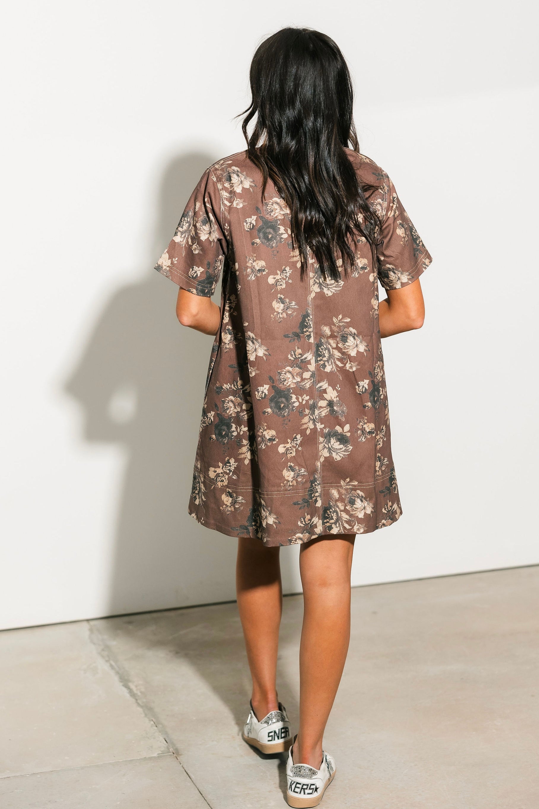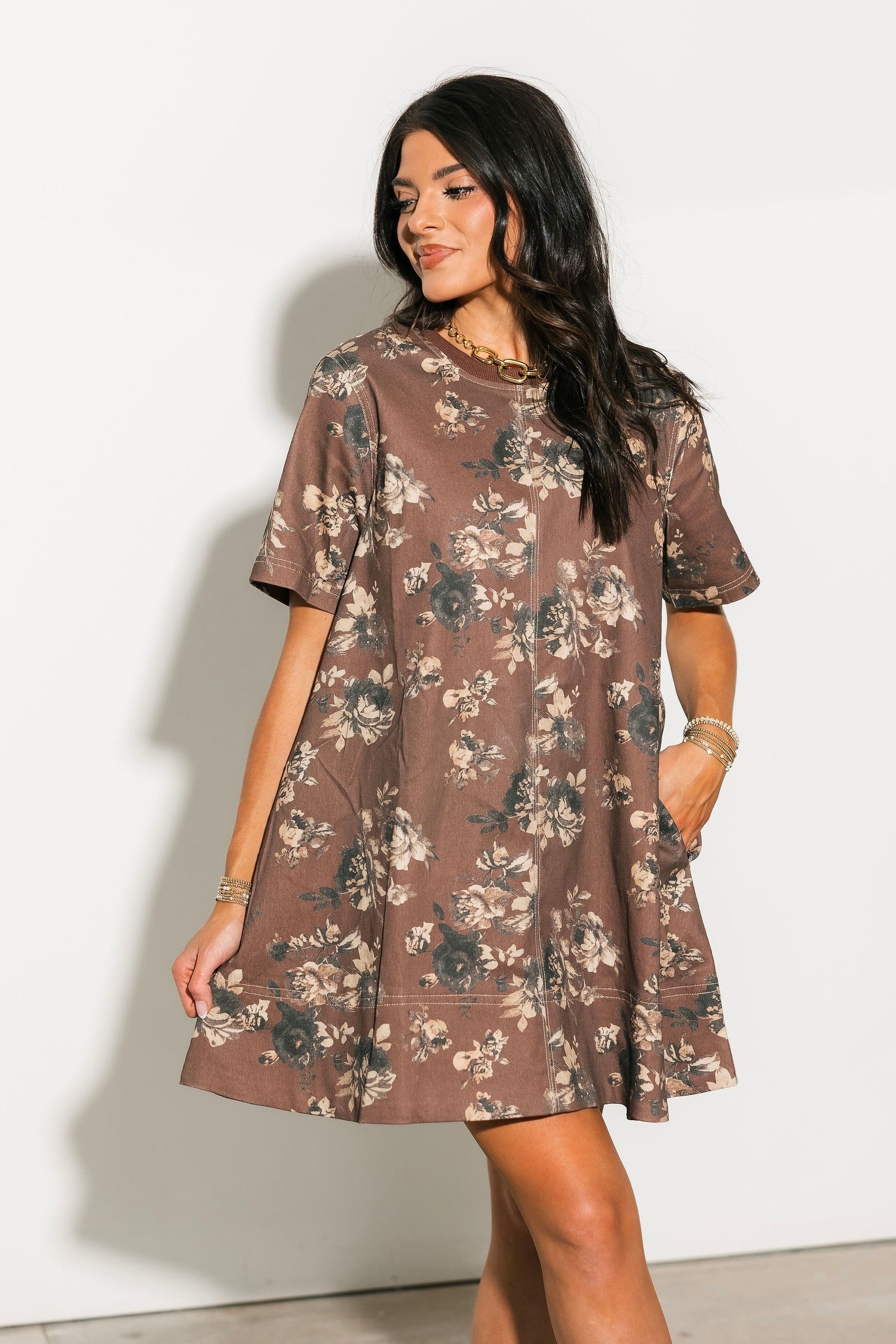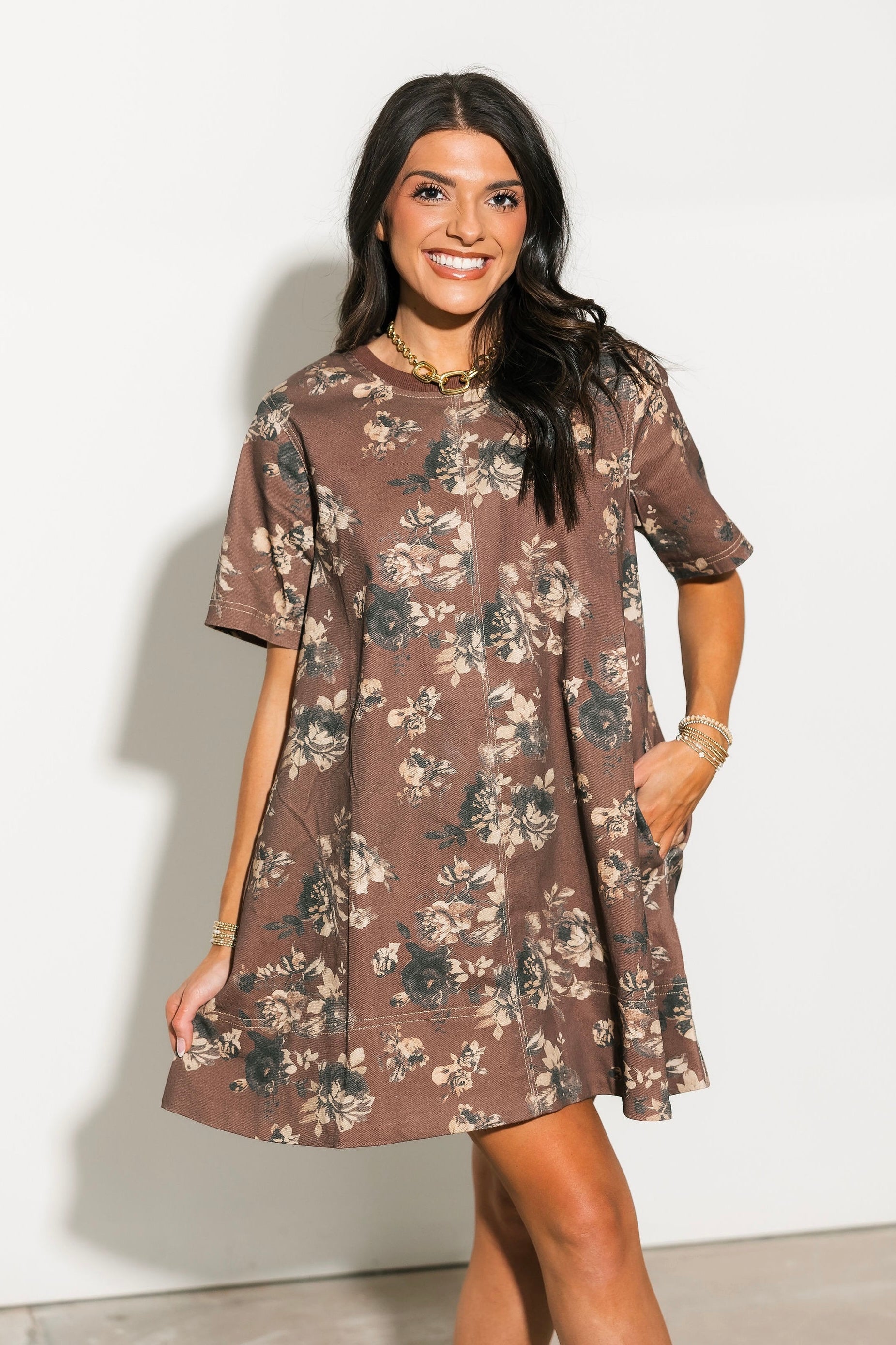 The Fields Of Love Mini Dress in Walnut is your new go-to for relaxed, feminine charm. Designed with a boxy, oversized fit, this mini features a classic crew neckline, easy short sleeves, and a flattering flow that keeps you comfortable all day long. The olive backdrop paired with a playful floral print adds just the right touch of color and personality. Pair it with sneakers, boots, or sandals — it’s adorable any way you style it. Harli is wearing a small.