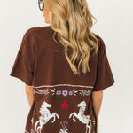 Daydreamer Floral Horse Pattern Merch Tee In Nutmeg