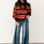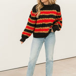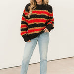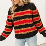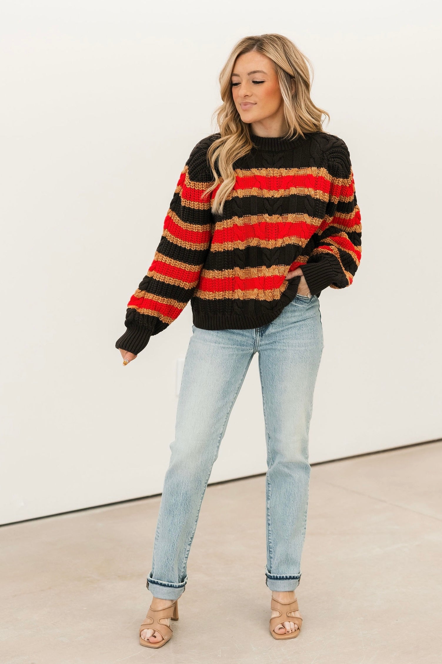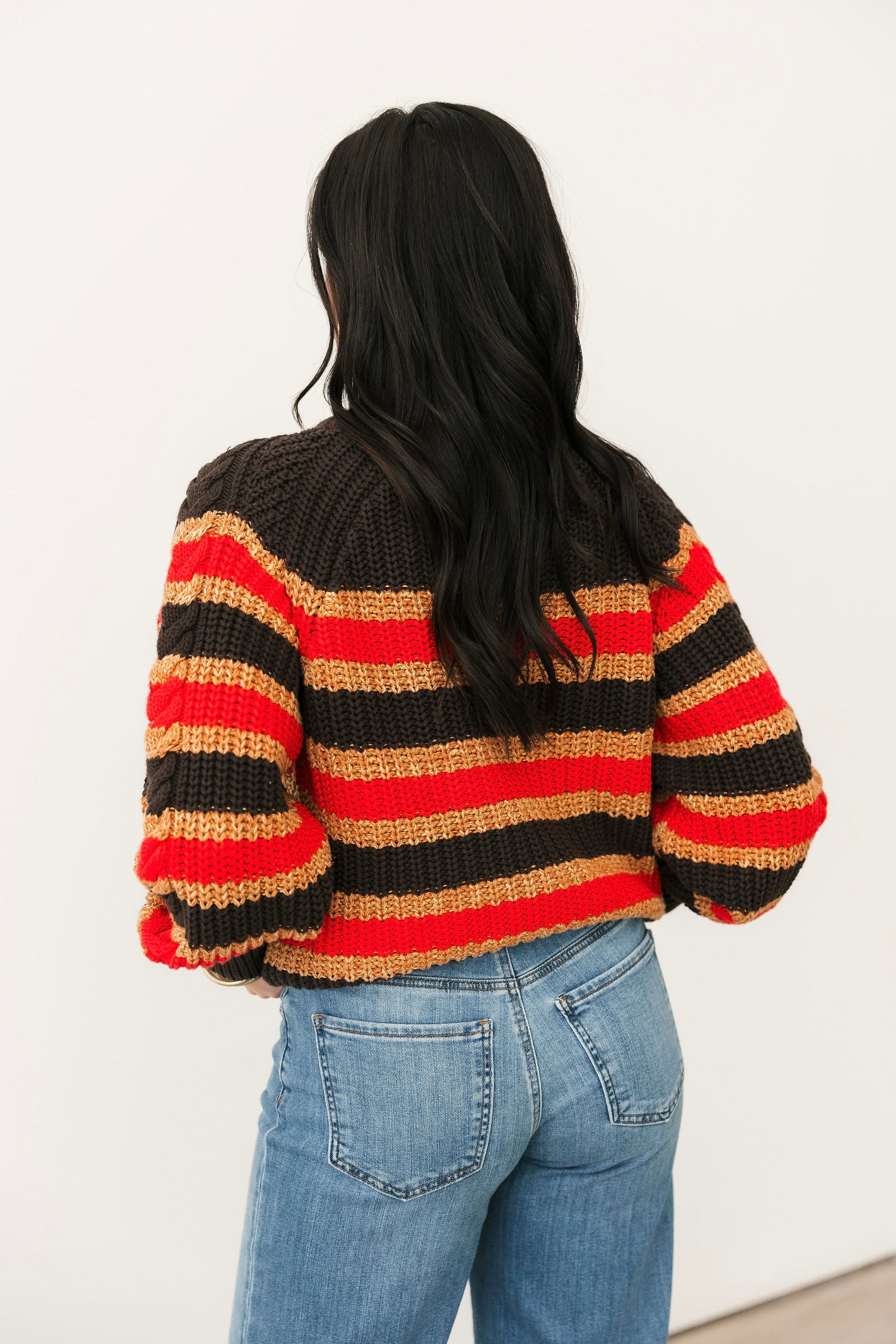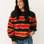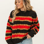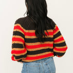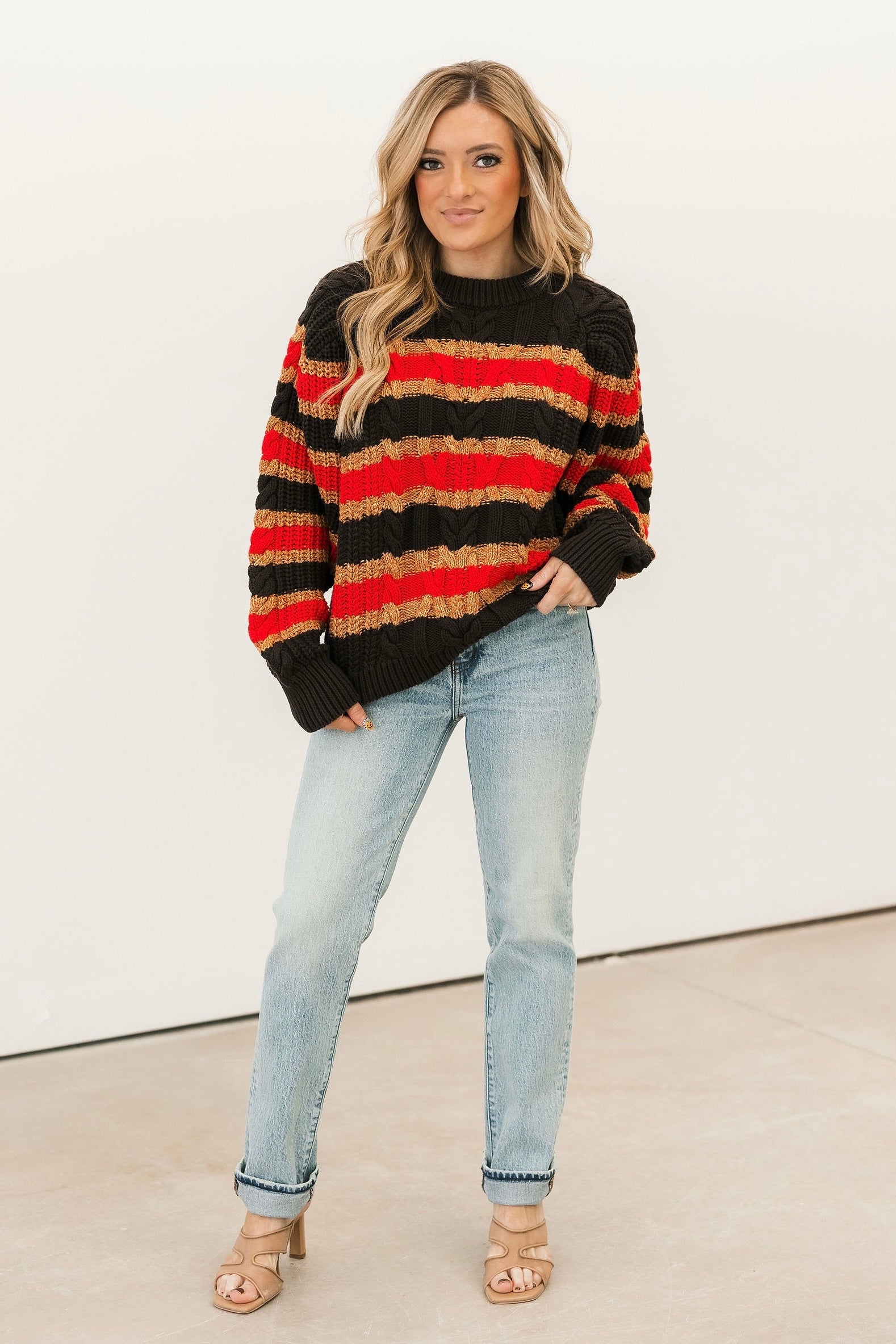 Free People Frankie Cable Striped Pullover In Chocolate Combo
