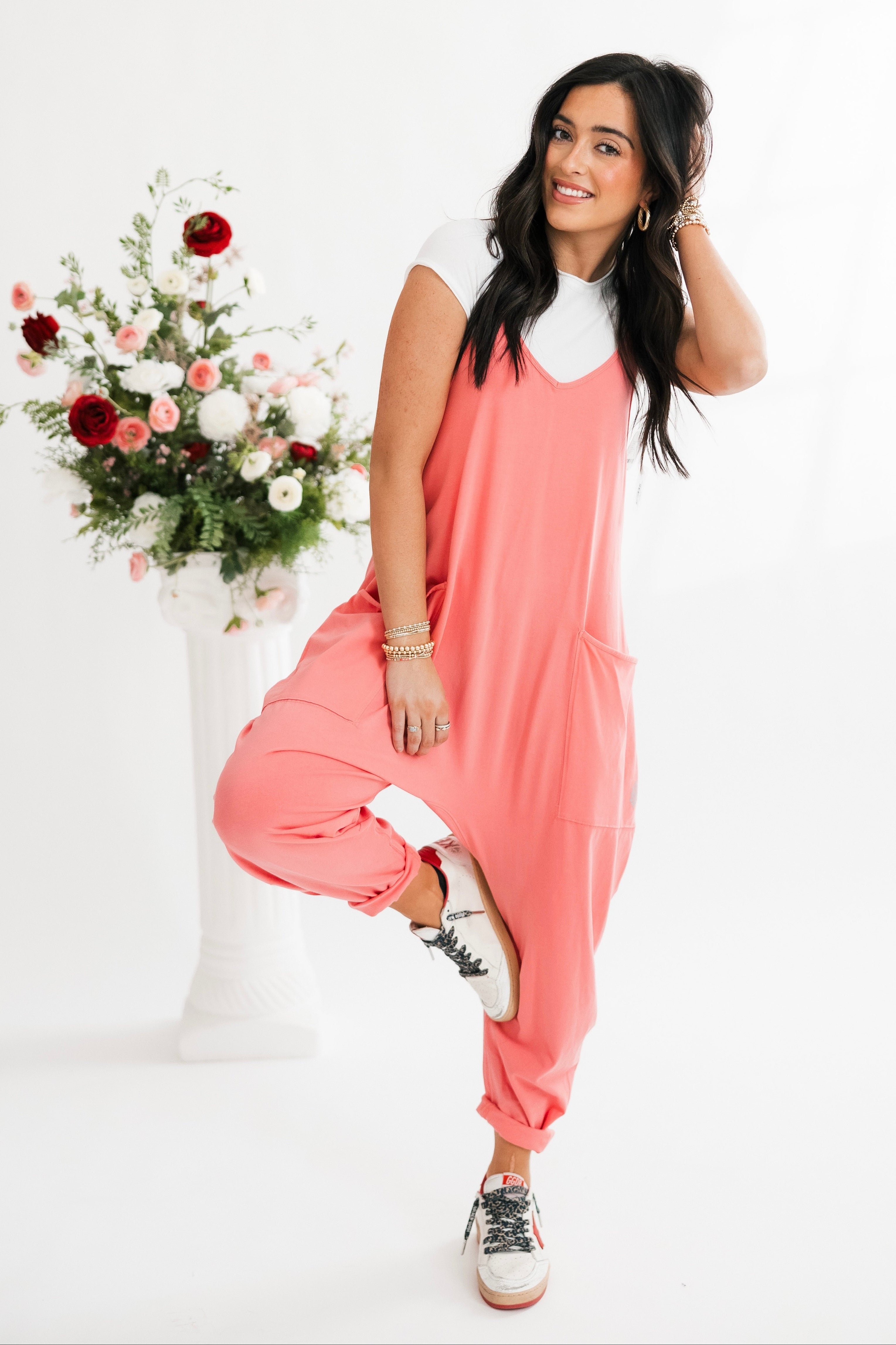 Free People Movement Hot Shot Onesie In Hibiscus