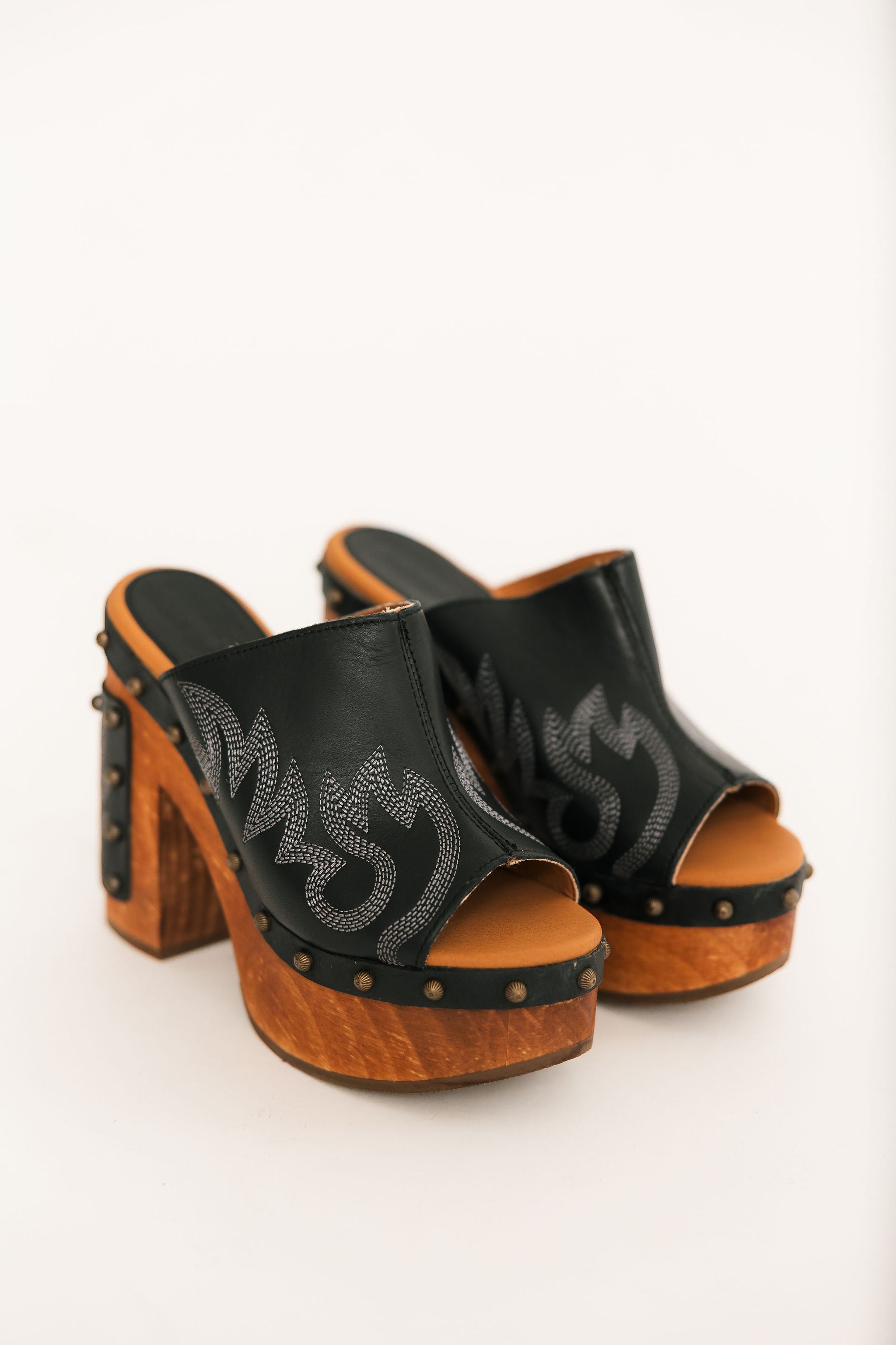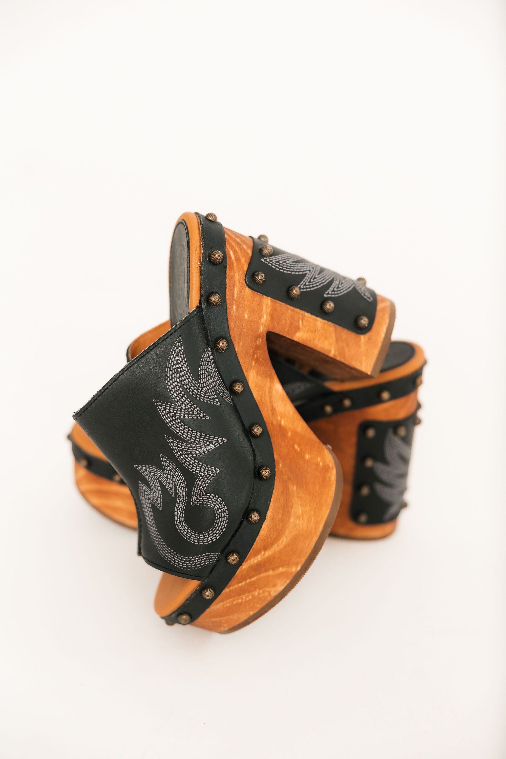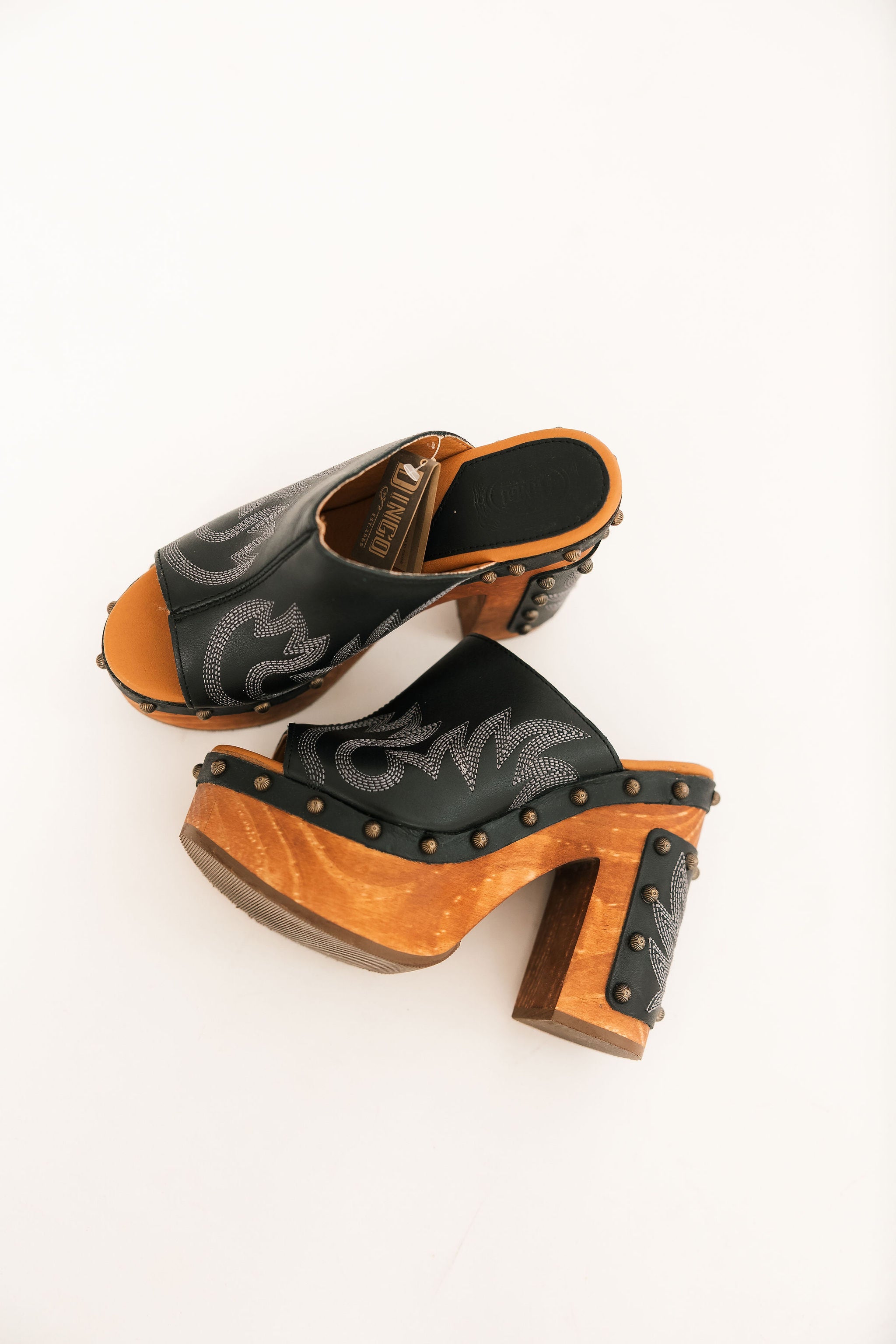 Dingo Est 1969 Free Spirit Wooden Sandal In Black