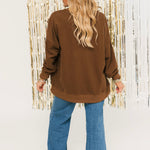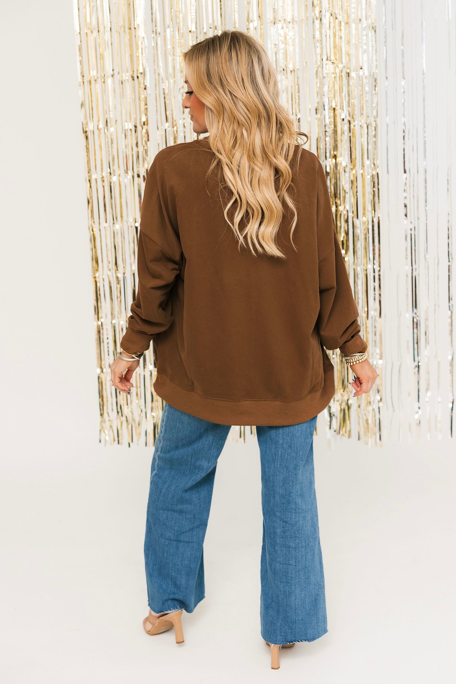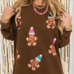 The Gingerbread Cheer Sweatshirt is your go-to cozy piece for the holiday season. Featuring sparkly gingerbread men and a relaxed crewneck fit, it’s perfect for sipping cocoa, decorating cookies, or festive outings. Lexi is wearing a small.