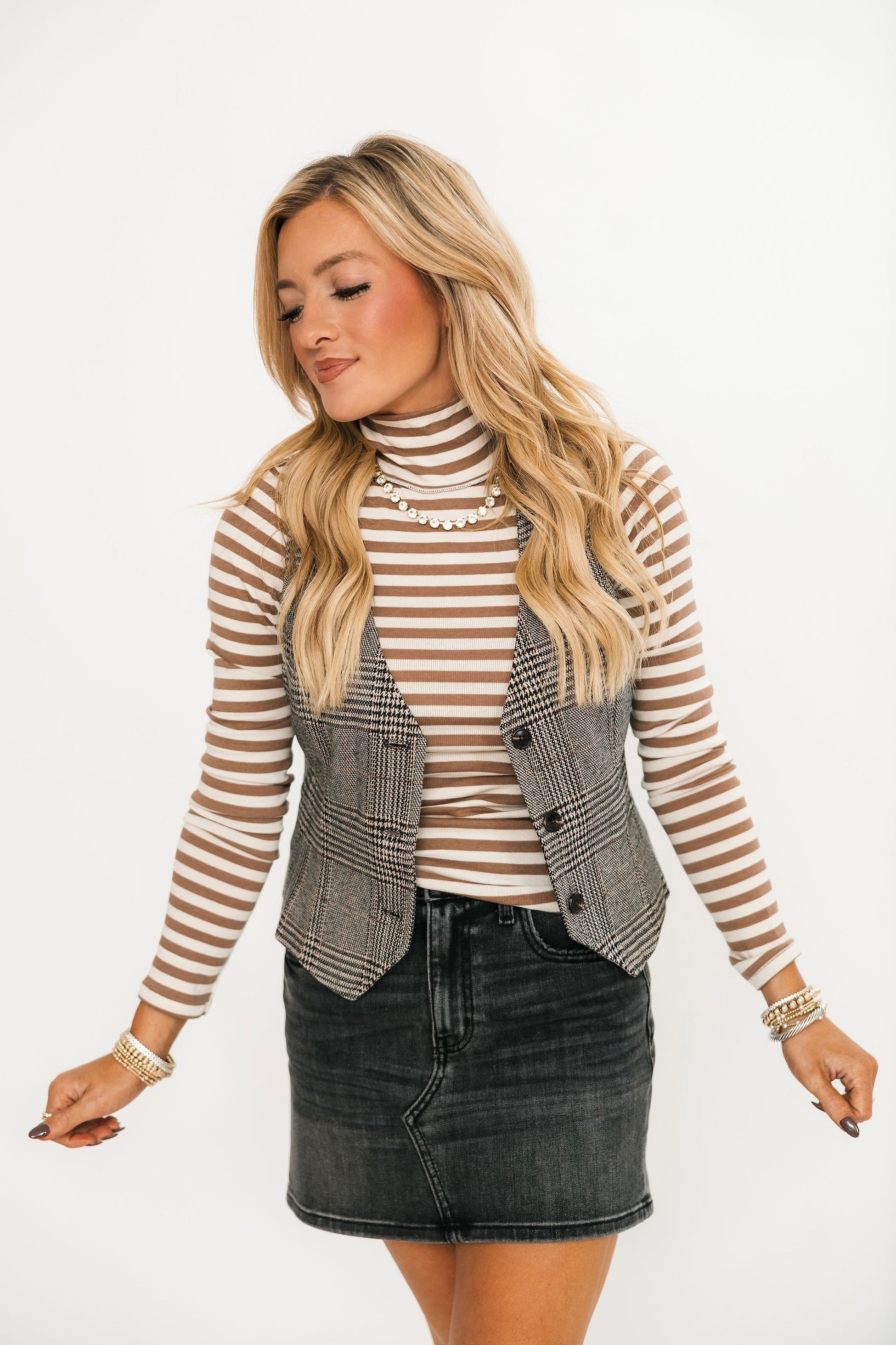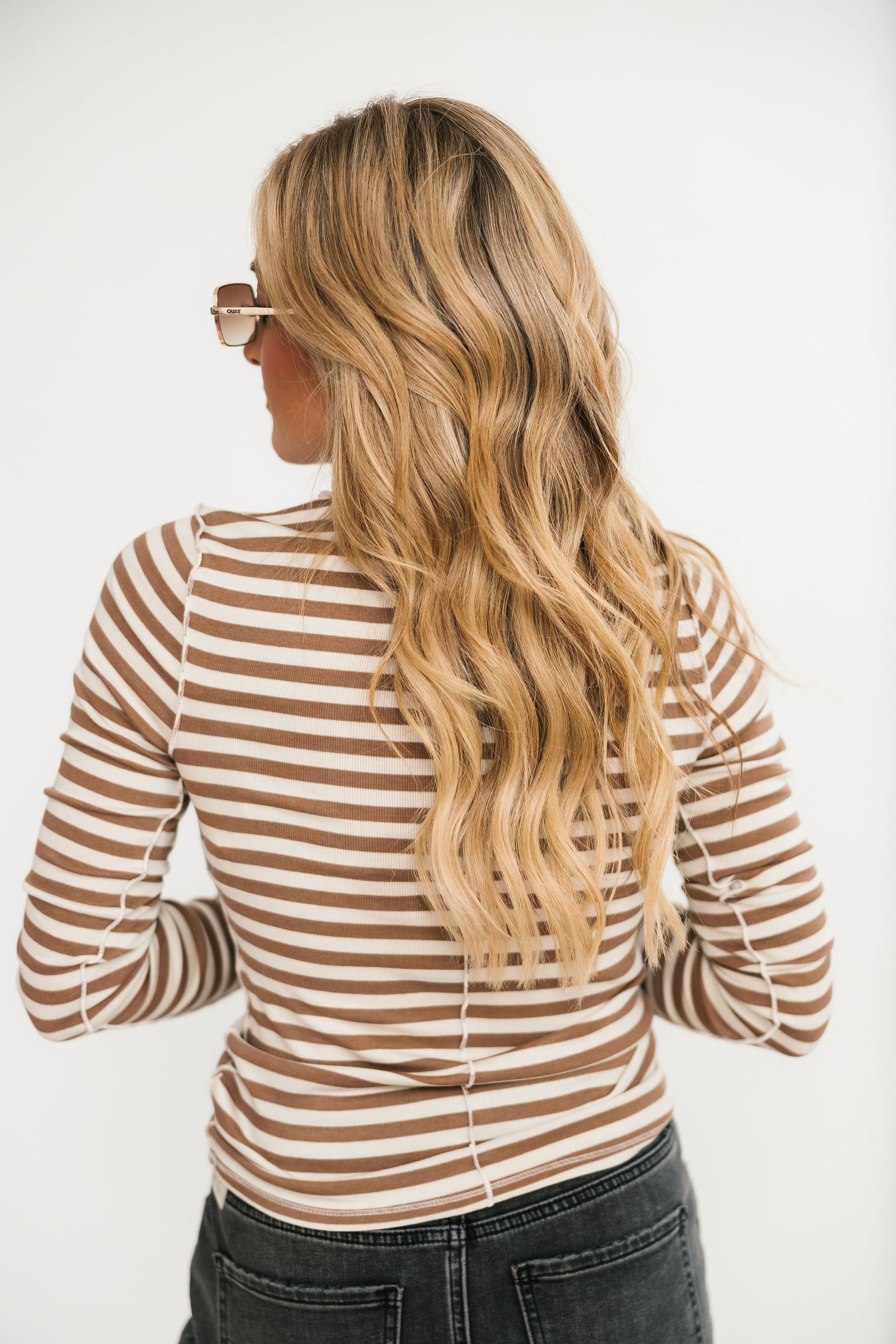 The most essential layering piece from our We The Free collection, featured in a striped fabrication and slim-fitting silhouette with a turtle-neckline and long-sleeves. Lexi is wearing an xs.