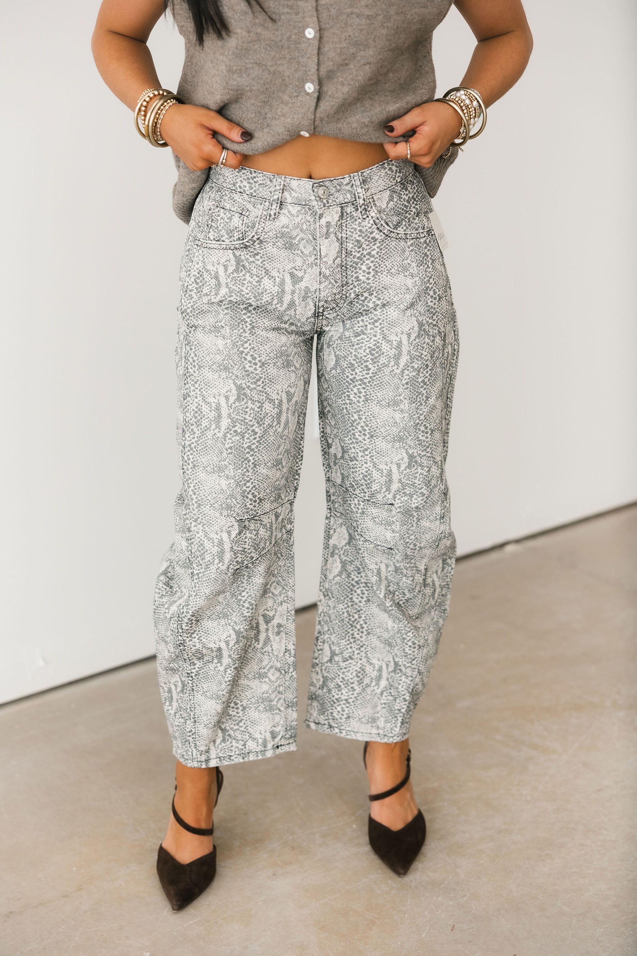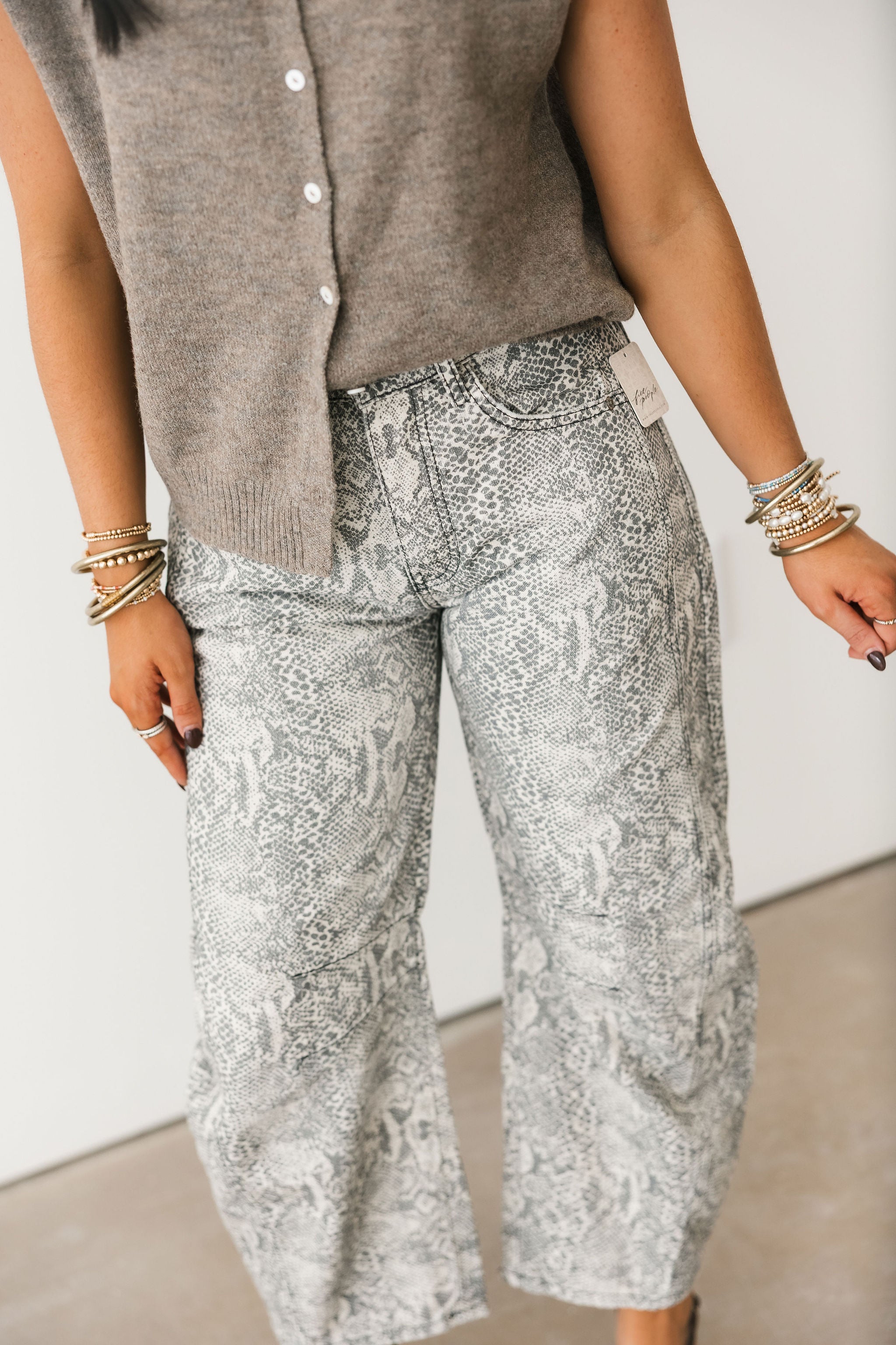 Free People Good Luck Printed Barrel Jeans In Snake Combo