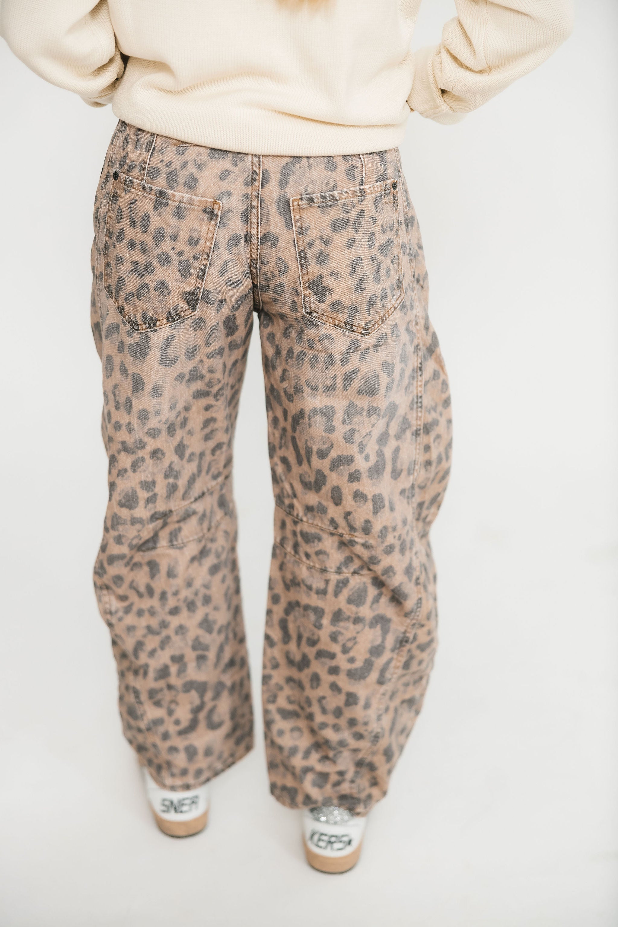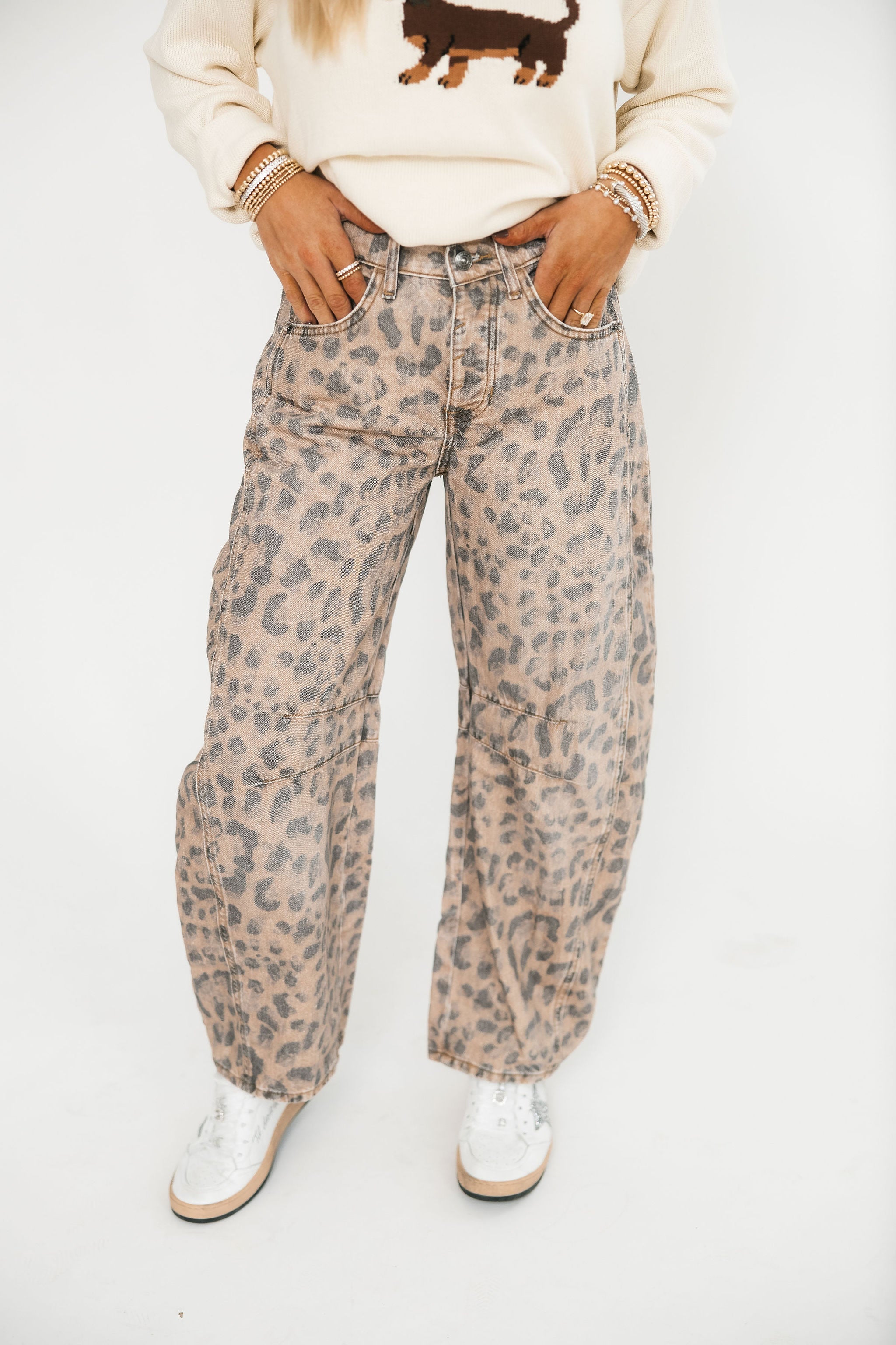 Good Luck Printed Barrel Jeans | Brown Sugar