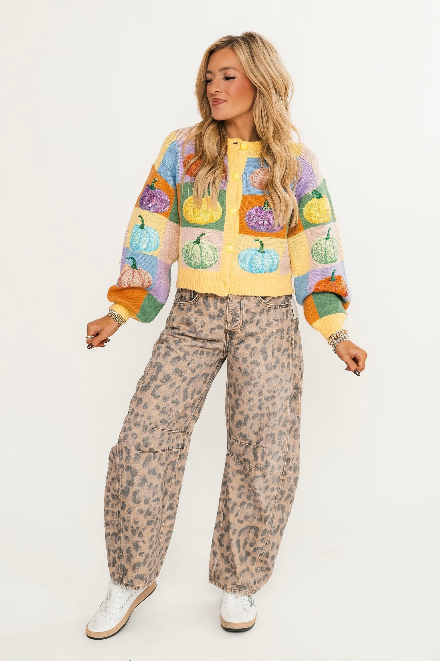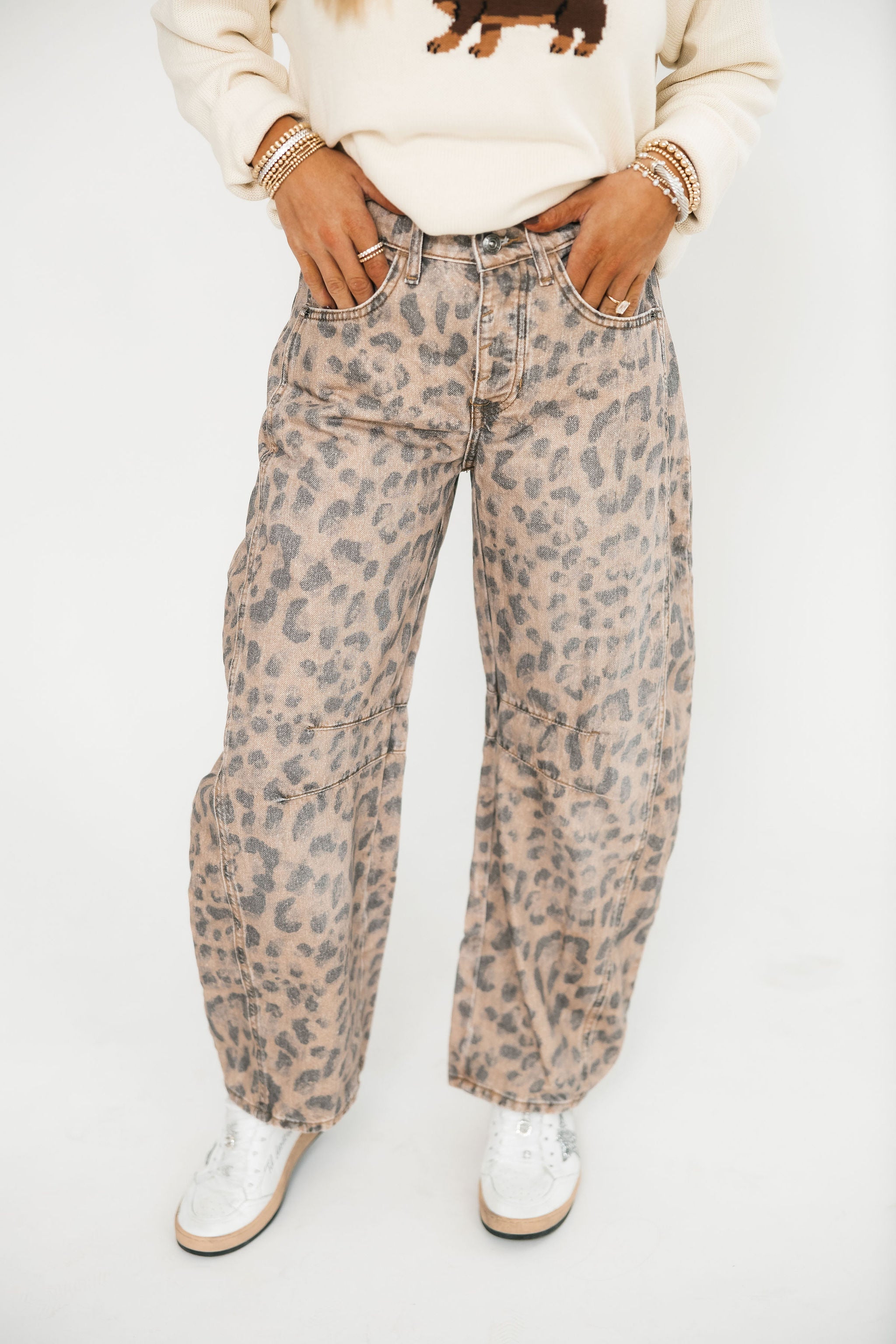 Our most-loved barrel jeans from Free People's We The Free collection, now featured in a playful printed fabrication. Lexi is wearing a 24, Sage is wearing a 25.