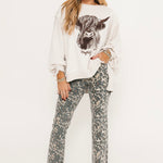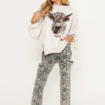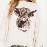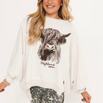 Just as cool as it is classic, this goes-with-anything long sleeve tee is featured in a slouchy, relaxed fit with worn, highland cow graphic at front for a true lived-in look. Lexi is wearing an xs.