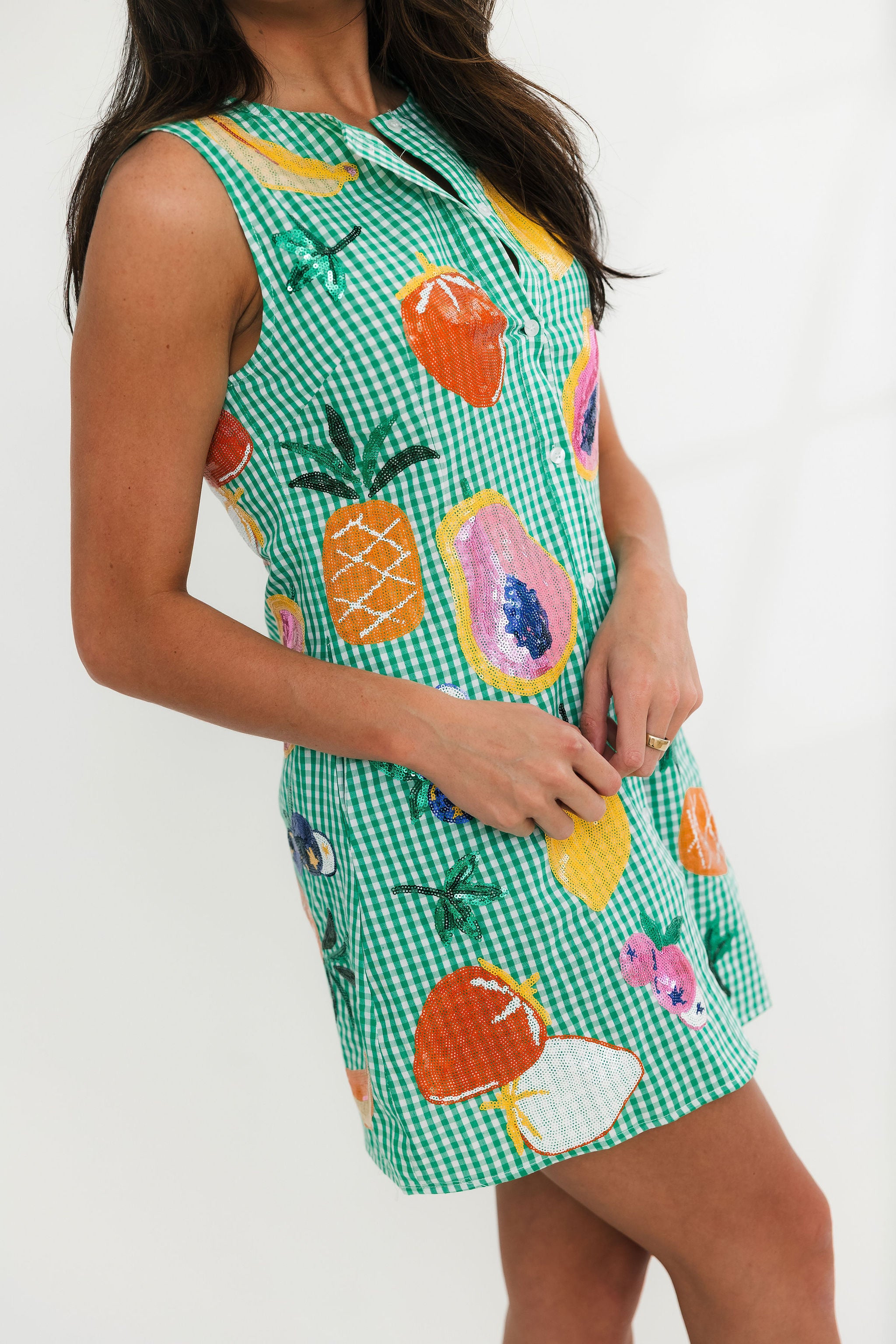 Green Gingham Fruit Button Up Tank Dress | Queen Of Sparkles