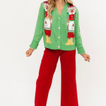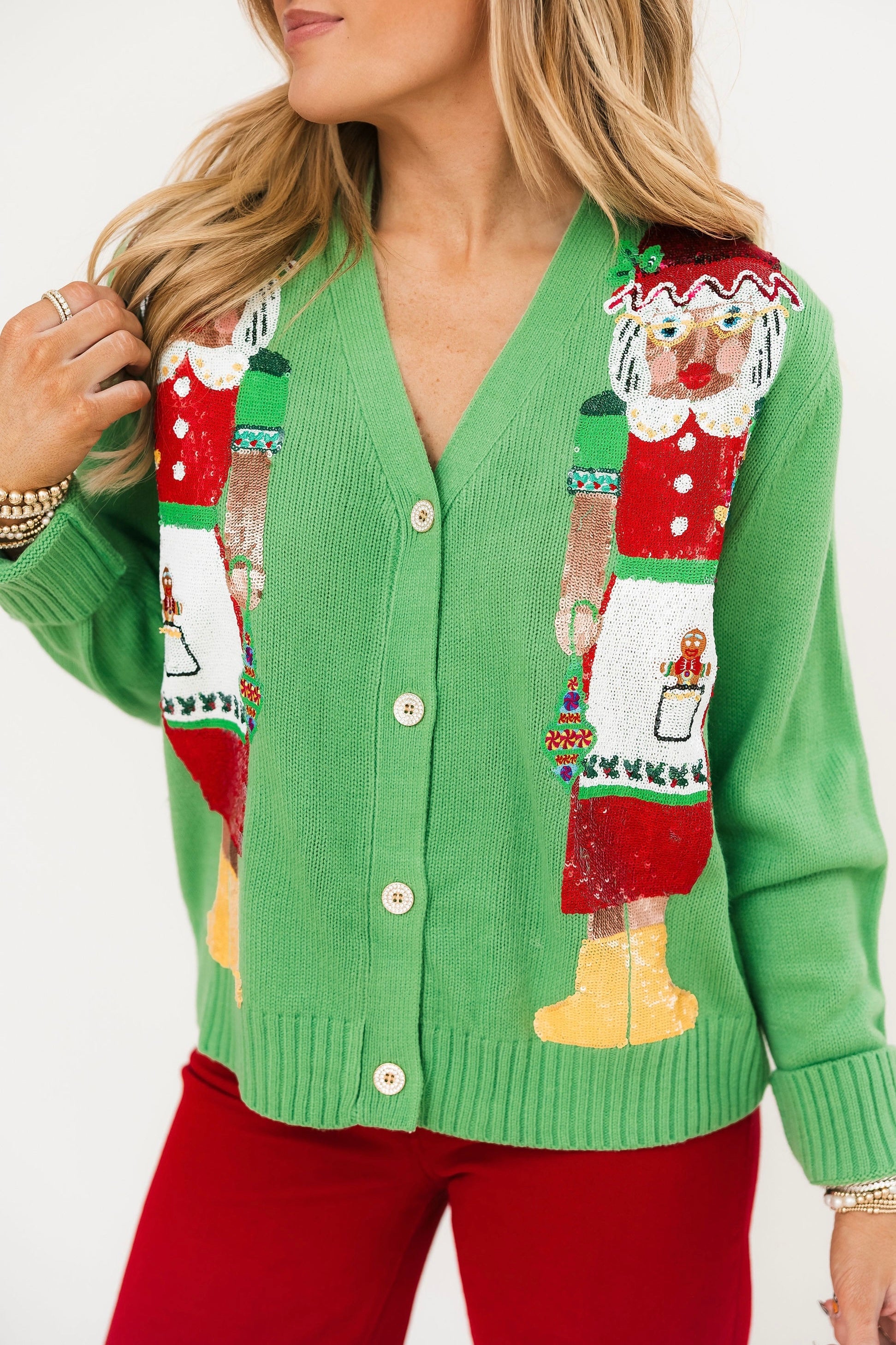 Green Mrs.Clause Button Up Cardigan | Queen Of Sparkles