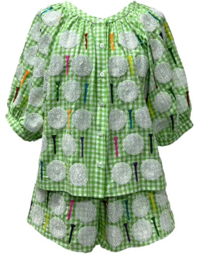 Green & White Gingham Golf Ball & Golf Tee Button Up Cotton Top | Queen Of Sparkles