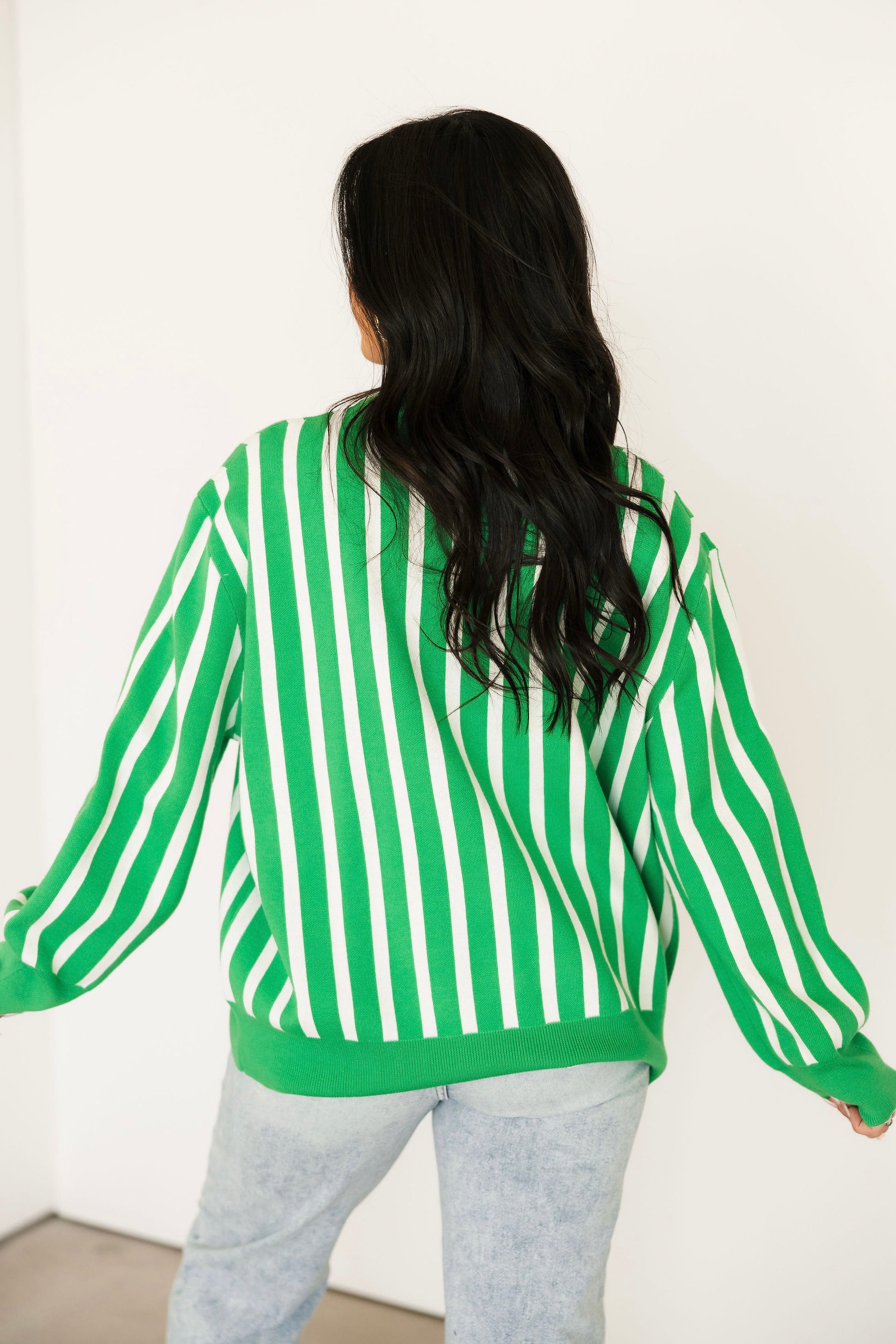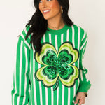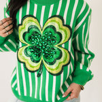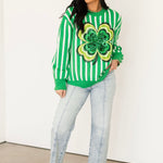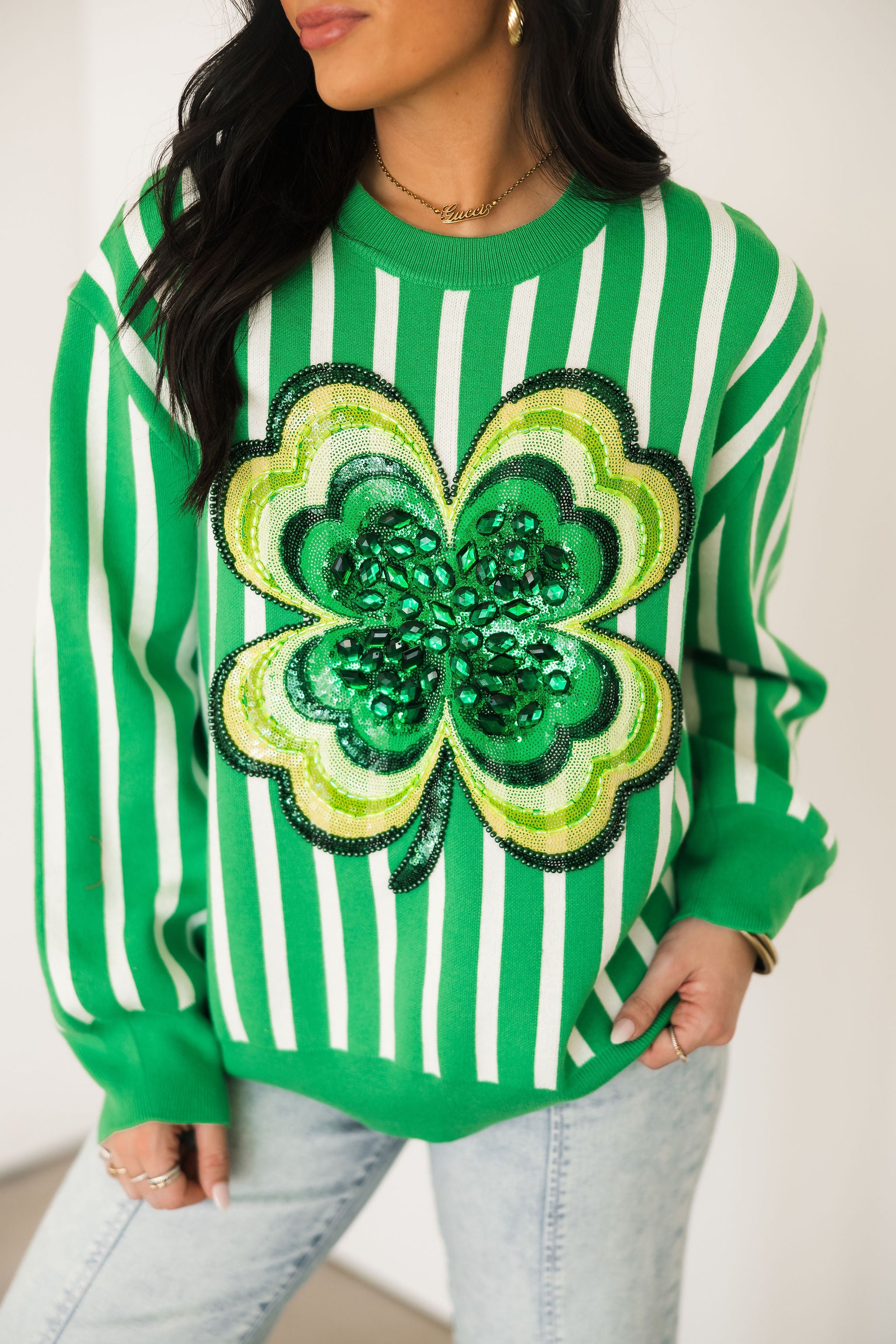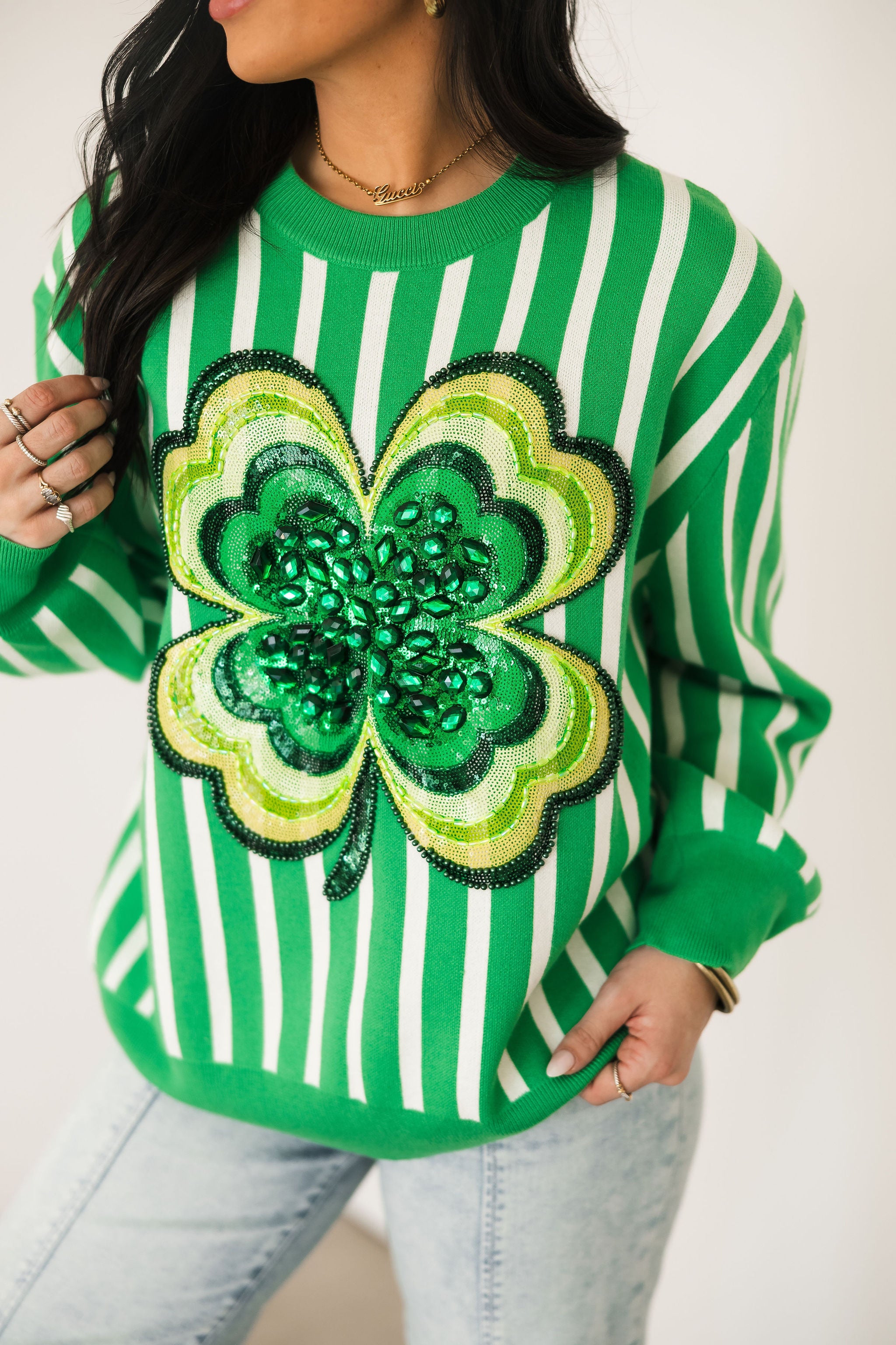 Green & White Stripe Shamrock Sweater | Queen Of Sparkles