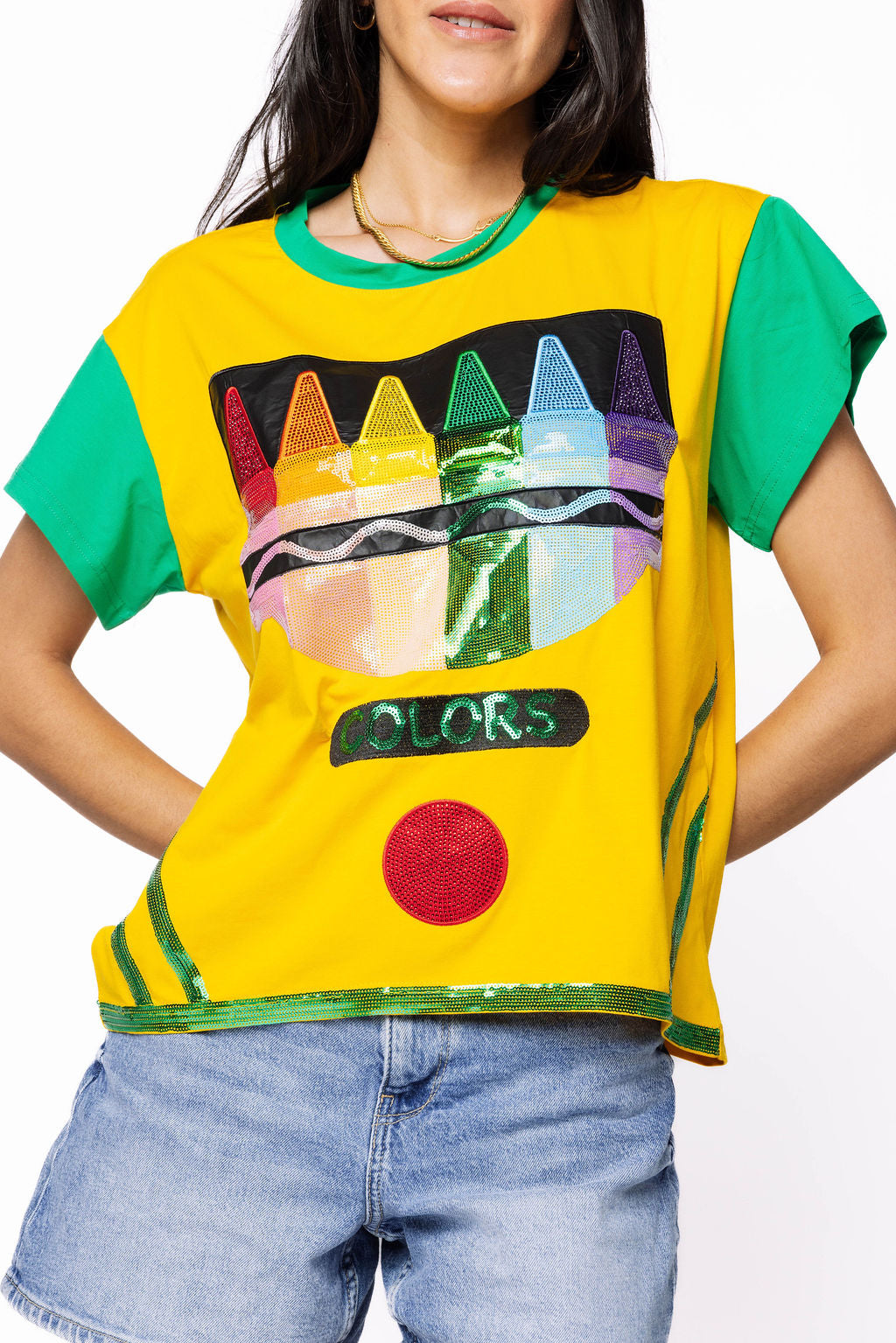 Green & Yellow Crayon Tee | Queen Of Sparkles