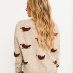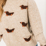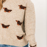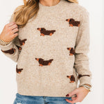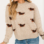 Cozy, cute, and totally playful, this relaxed-fit sweater features soft grey fabric and adorable weenie dog graphics for a whimsical touch. Perfect for layering over jeans, leggings, or skirts, it’s an easy way to add fun and comfort to your fall wardrobe.