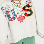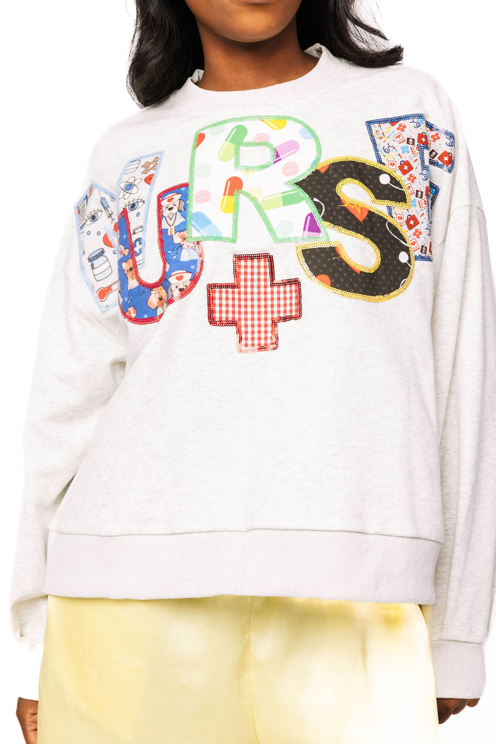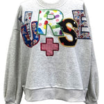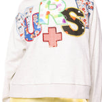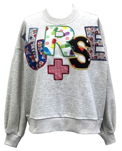 Grey 'Nurse' Multi Fabric Sweatshirt | Queen Of Sparkles