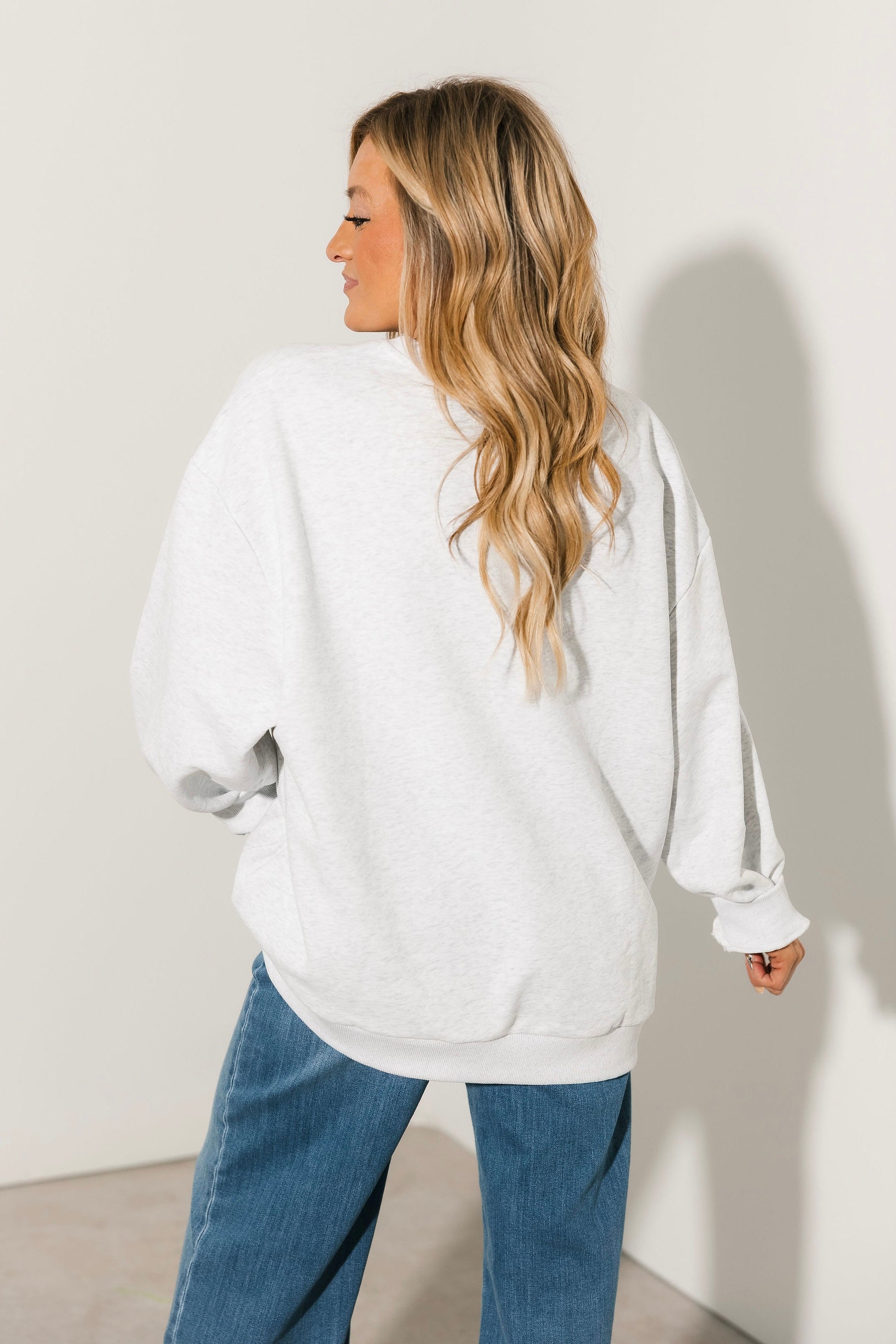 The Queen Of Sparkles Grey & Pink Fair Skin Basketball Queen Card Sweatshirt is a relaxed-fit crewneck featuring long sleeves and a playful QOS basketball card logo. Its soft fabric and roomy silhouette make it perfect for layering over tees or pairing with your favorite jeans for effortless casual style. Celebrate your love for the game while staying cozy and chic.