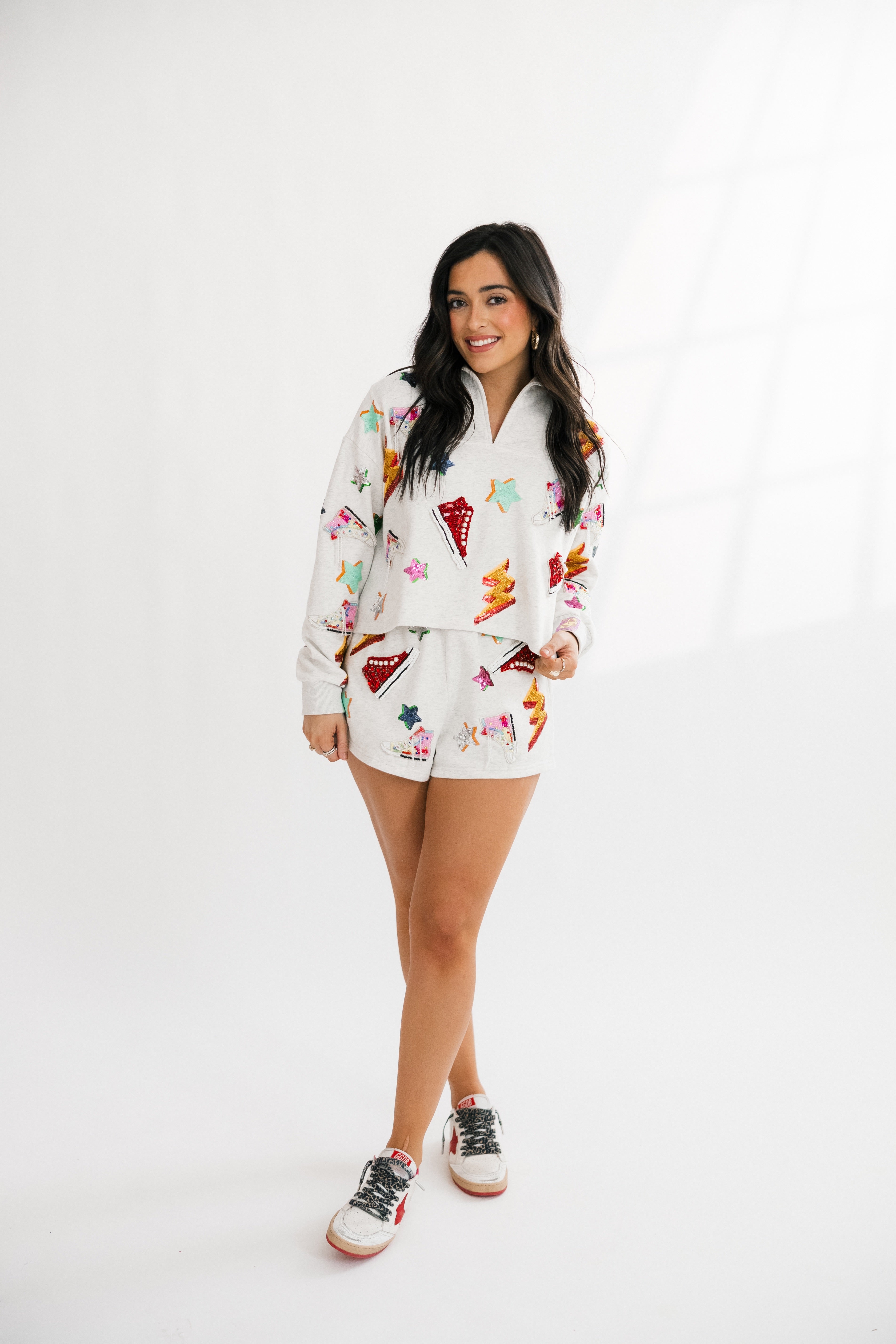 Queen Of Sparkles Grey Sneaker And Lightning Bolt Collar Sweatshirt