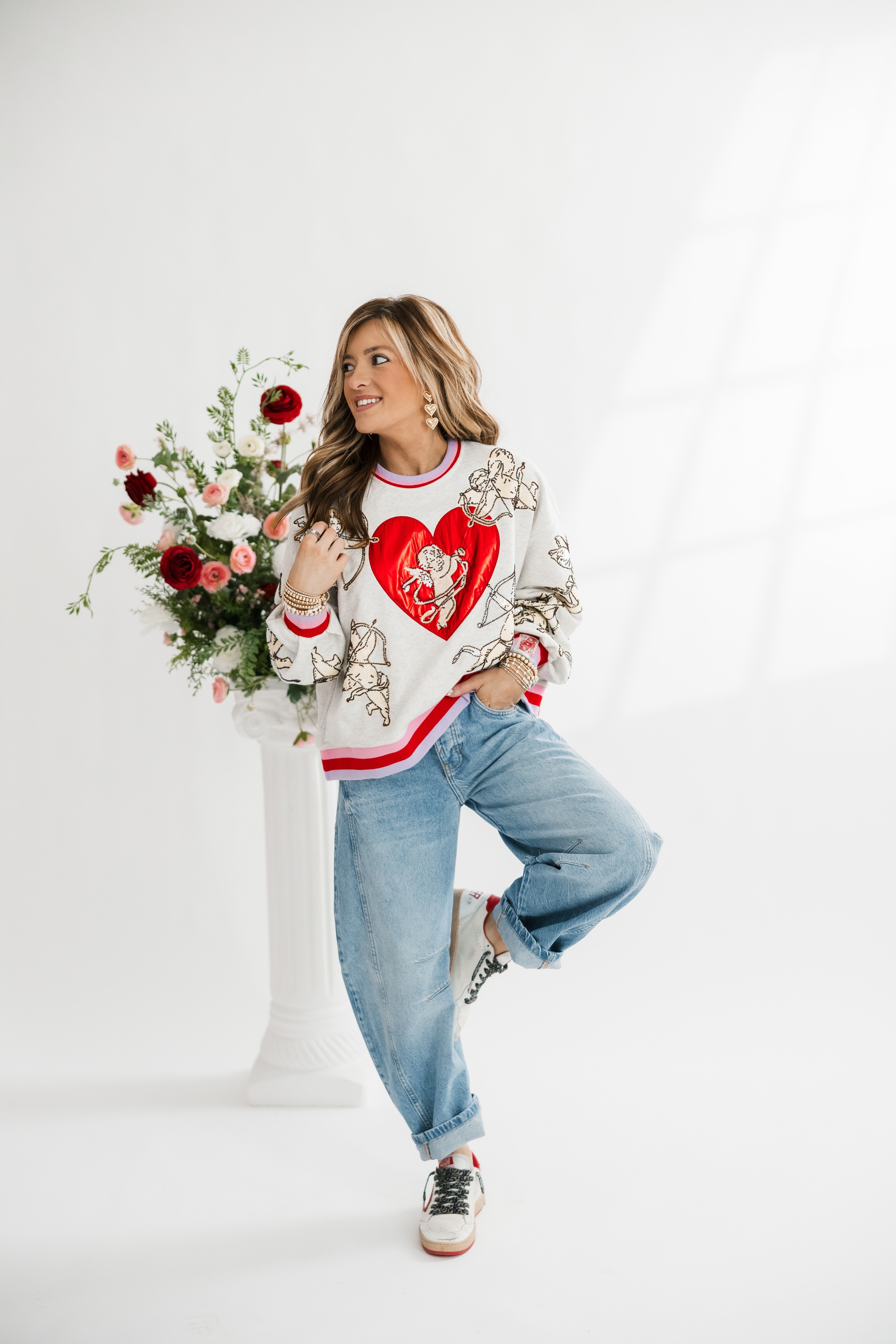 Grey Vintage Cupid Sweatshirt | Queen Of Sparkles