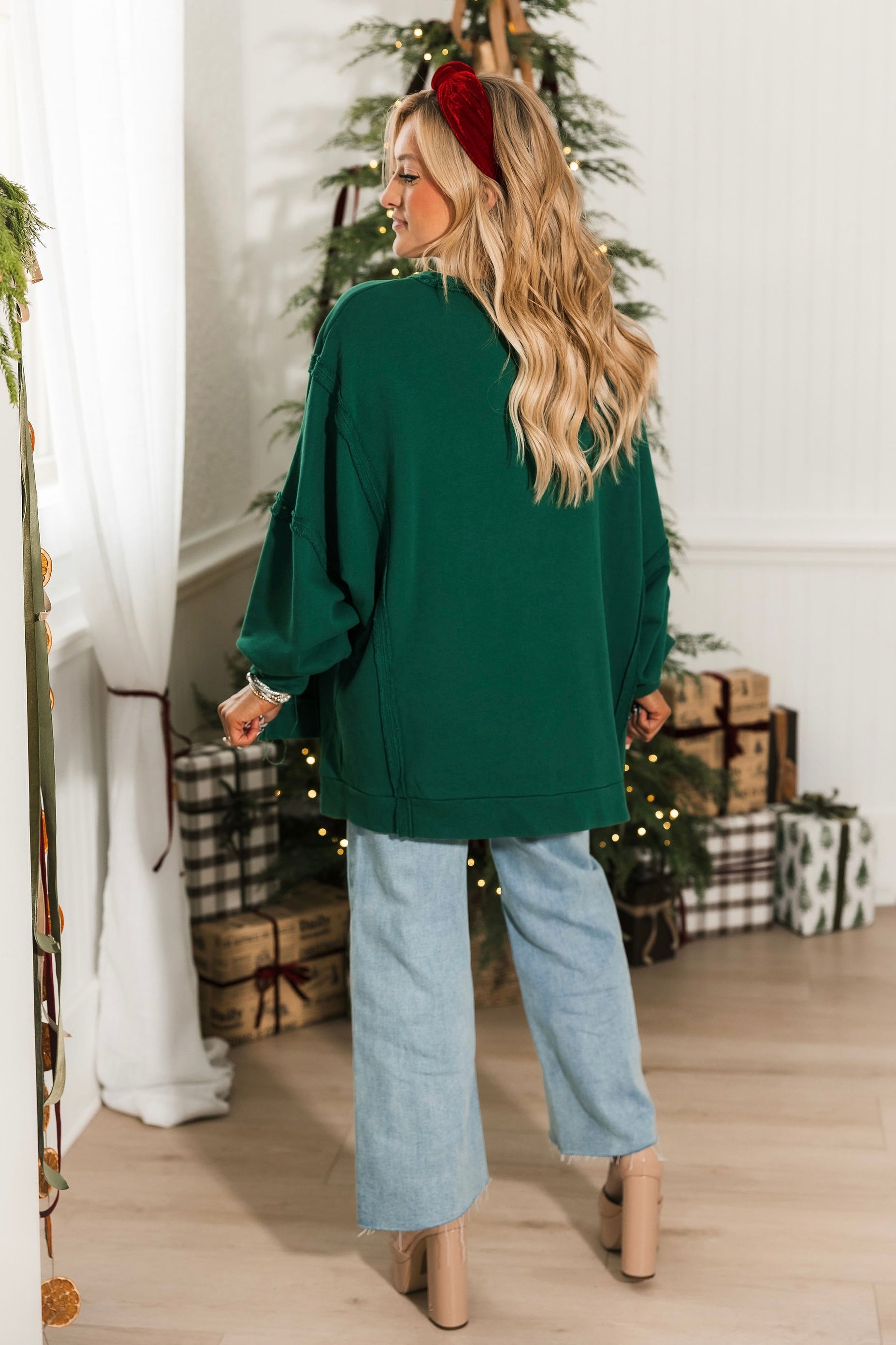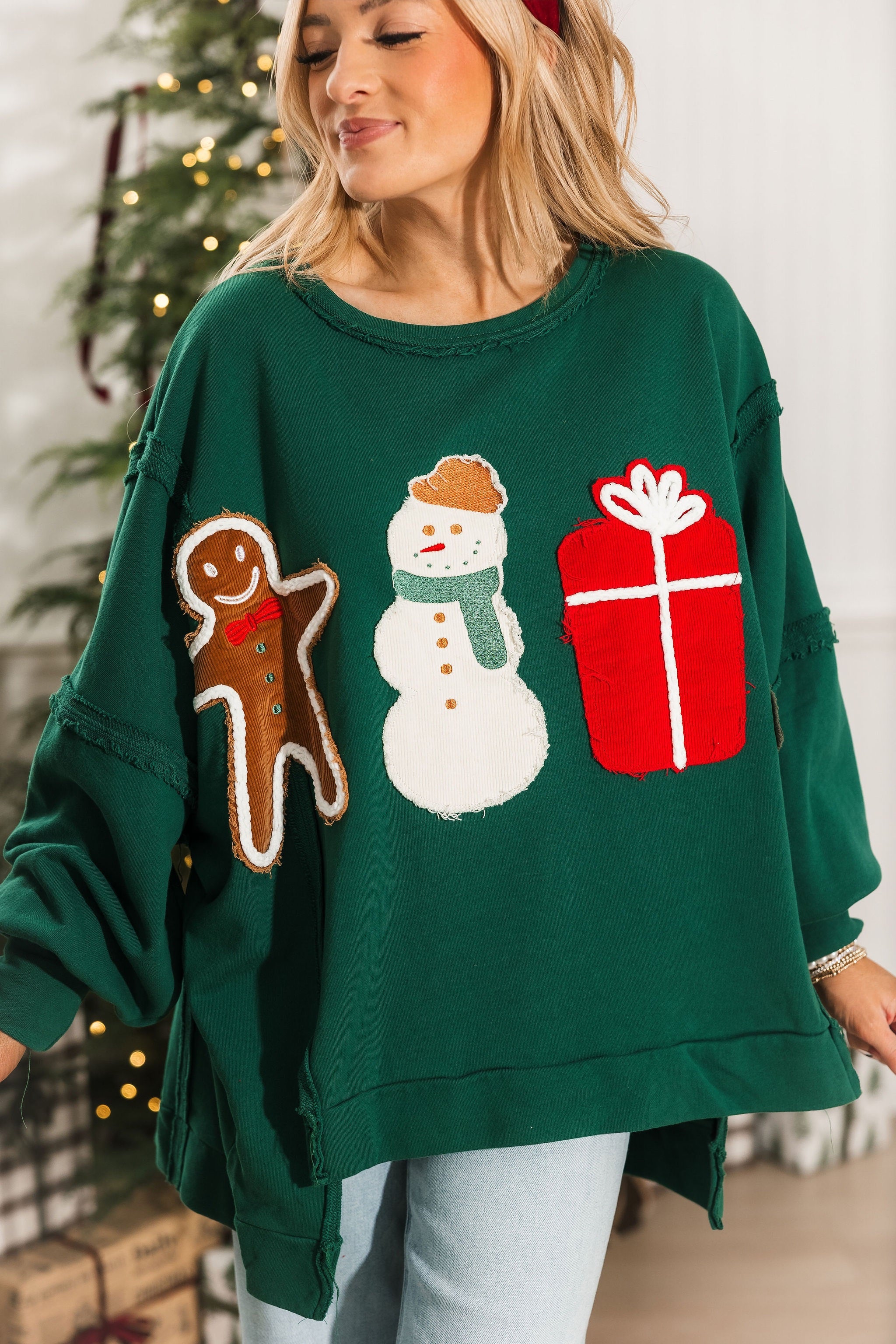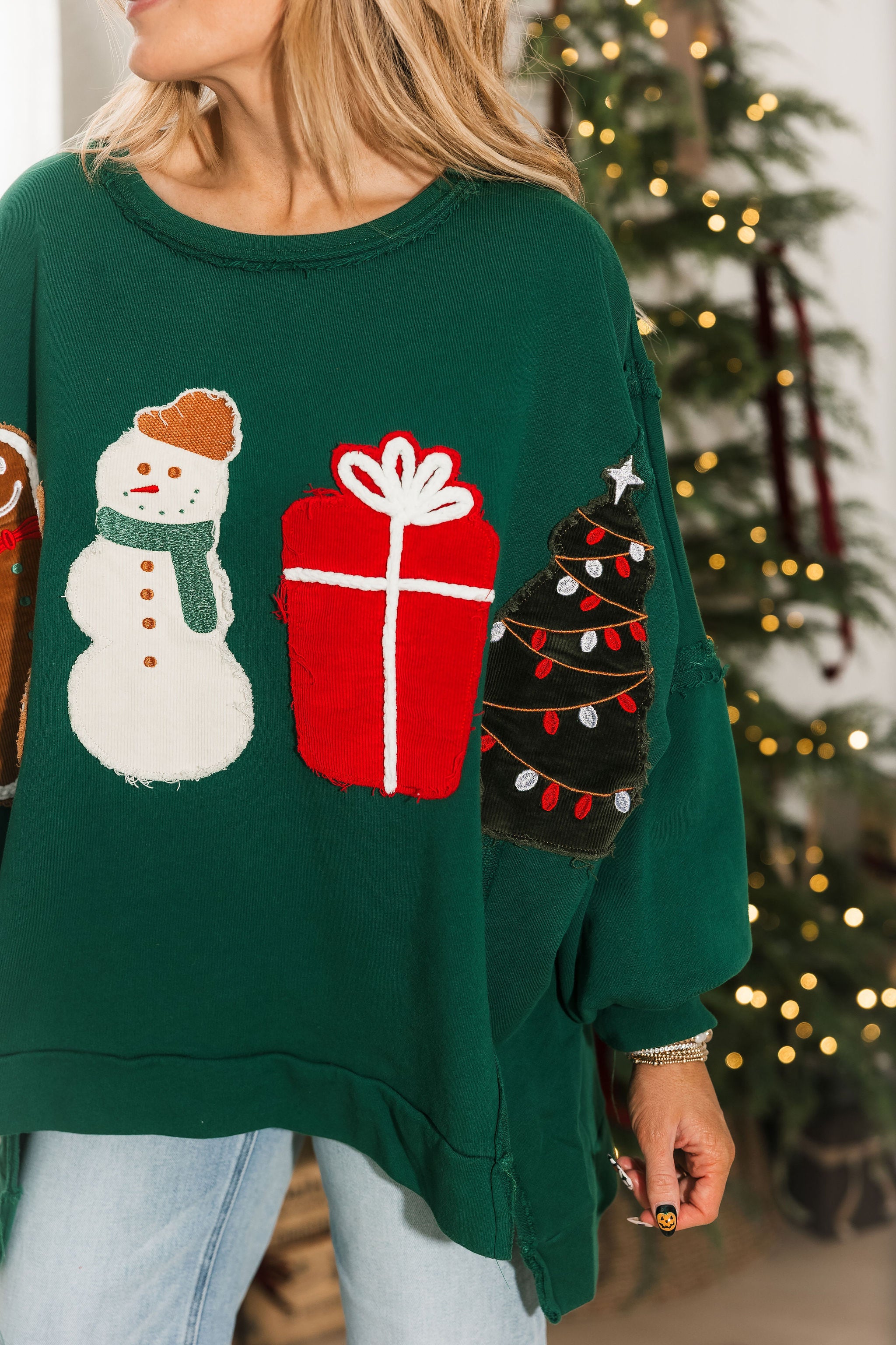 Celebrate the season in the Holiday Patchwork Crew. This relaxed-fit crewneck features long sleeves, a hi-lo hem, and charming corduroy Christmas patch details for a subtle nod to holiday cheer. Soft and easy to layer, it’s ideal for sipping cocoa, running winter errands, or adding a festive touch to your everyday winter wardrobe. Lexi is wearing a small.