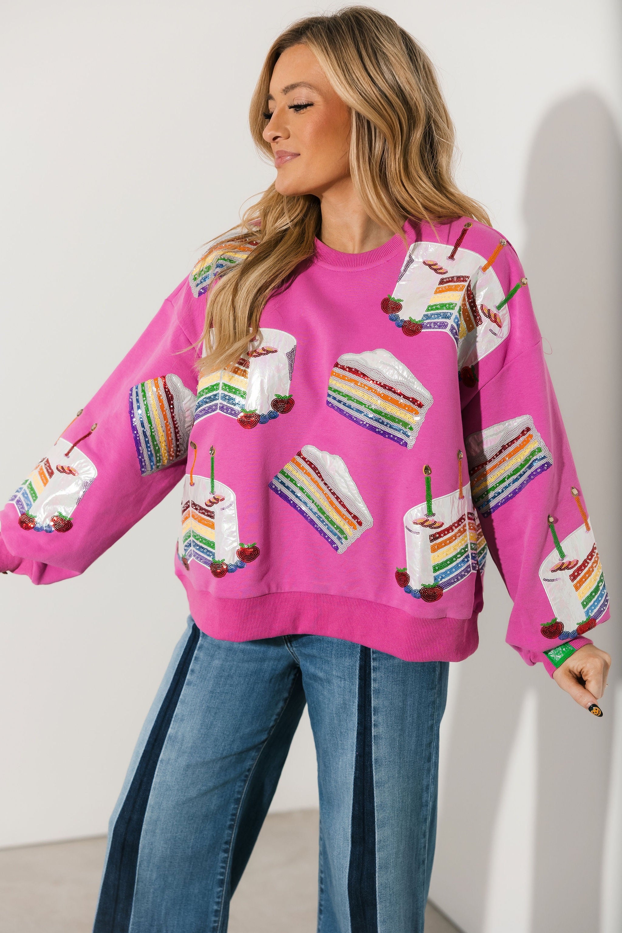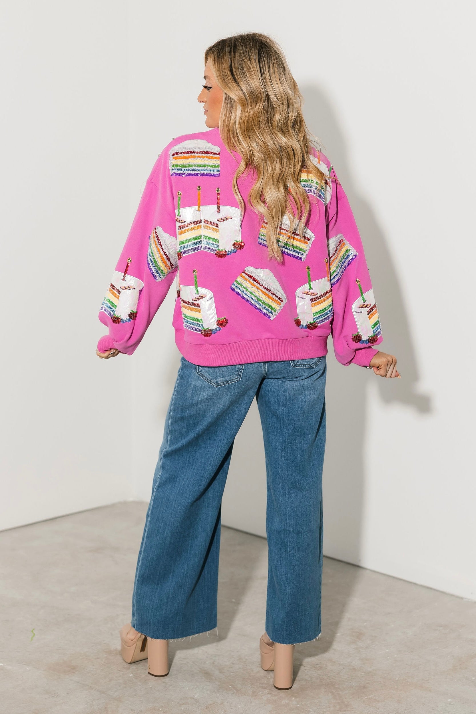 Hot Pink Rainbow Birthday Cake Sweatshirt | Queen Of Sparkles