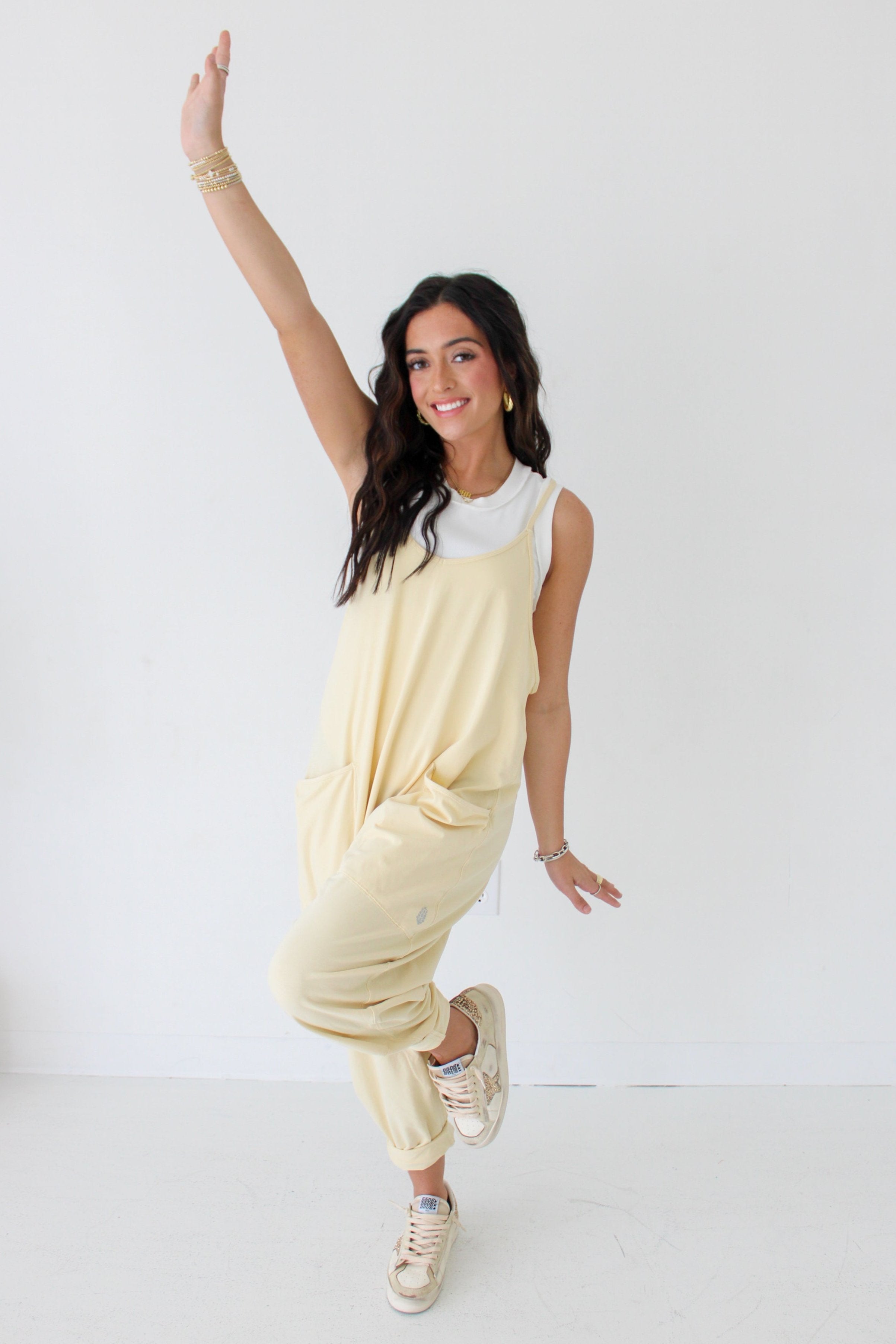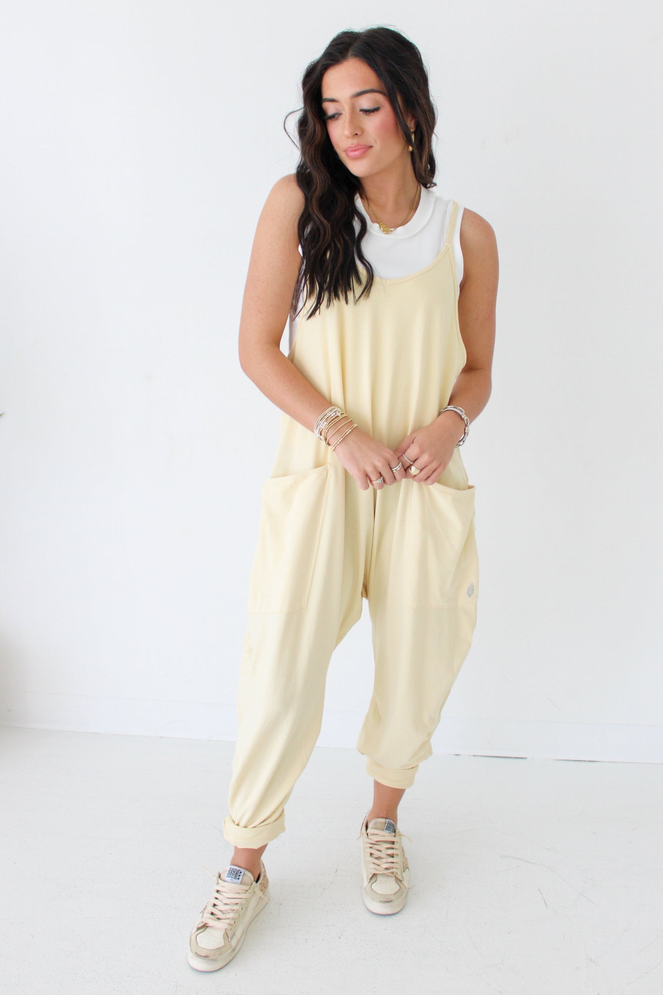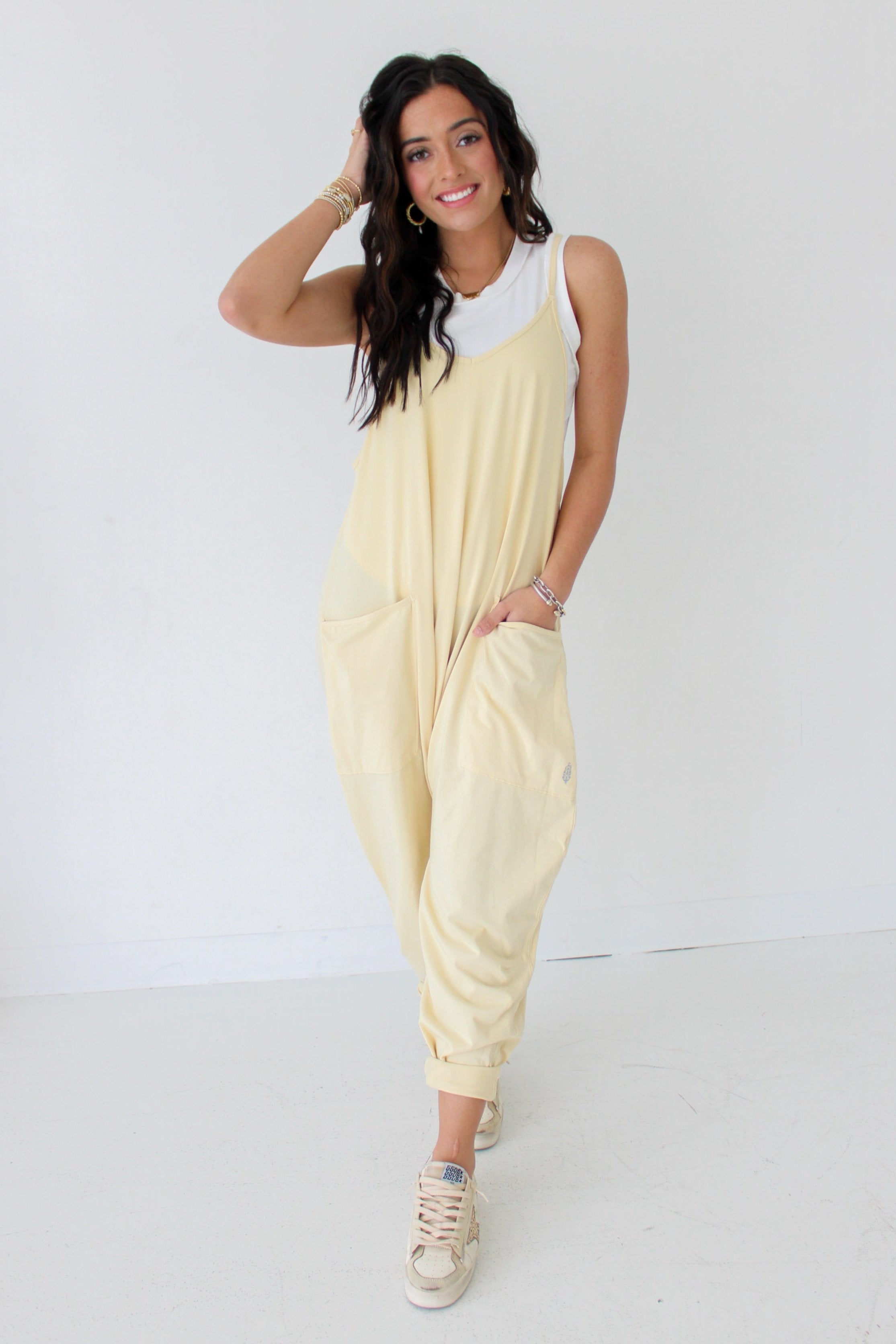 This soft and comfy onesie features a slouchy, relaxed-fitting design with a dropped crotch and convenient side pockets. Sage is wearing an XS.