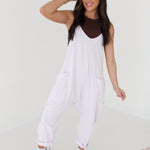 This soft and comfy onesie features a slouchy, relaxed-fitting design with a dropped crotch and convenient side pockets.