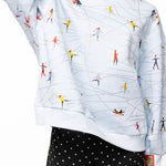 The Queen Of Sparkles Icy Blue Ice Skating Sweatshirt features a relaxed fit with a classic crewneck and long sleeves. Adorned with whimsical ice-skating graphics on a soft icy blue base, this cozy piece is perfect for winter outings, festive gatherings, or simply adding a touch of sparkle to everyday wear.