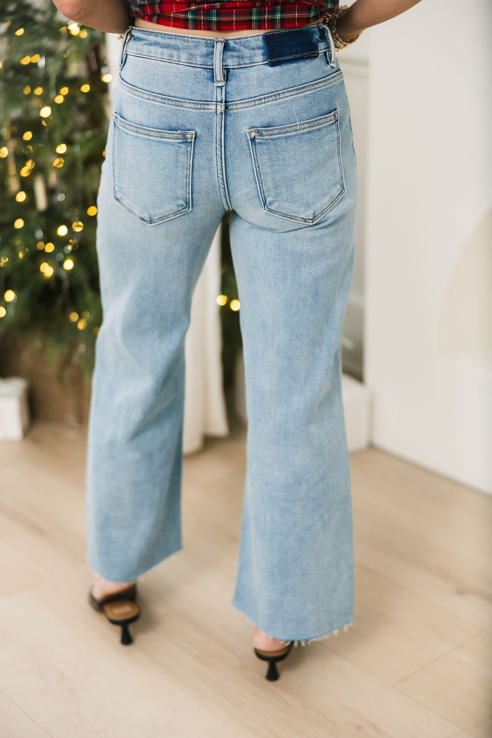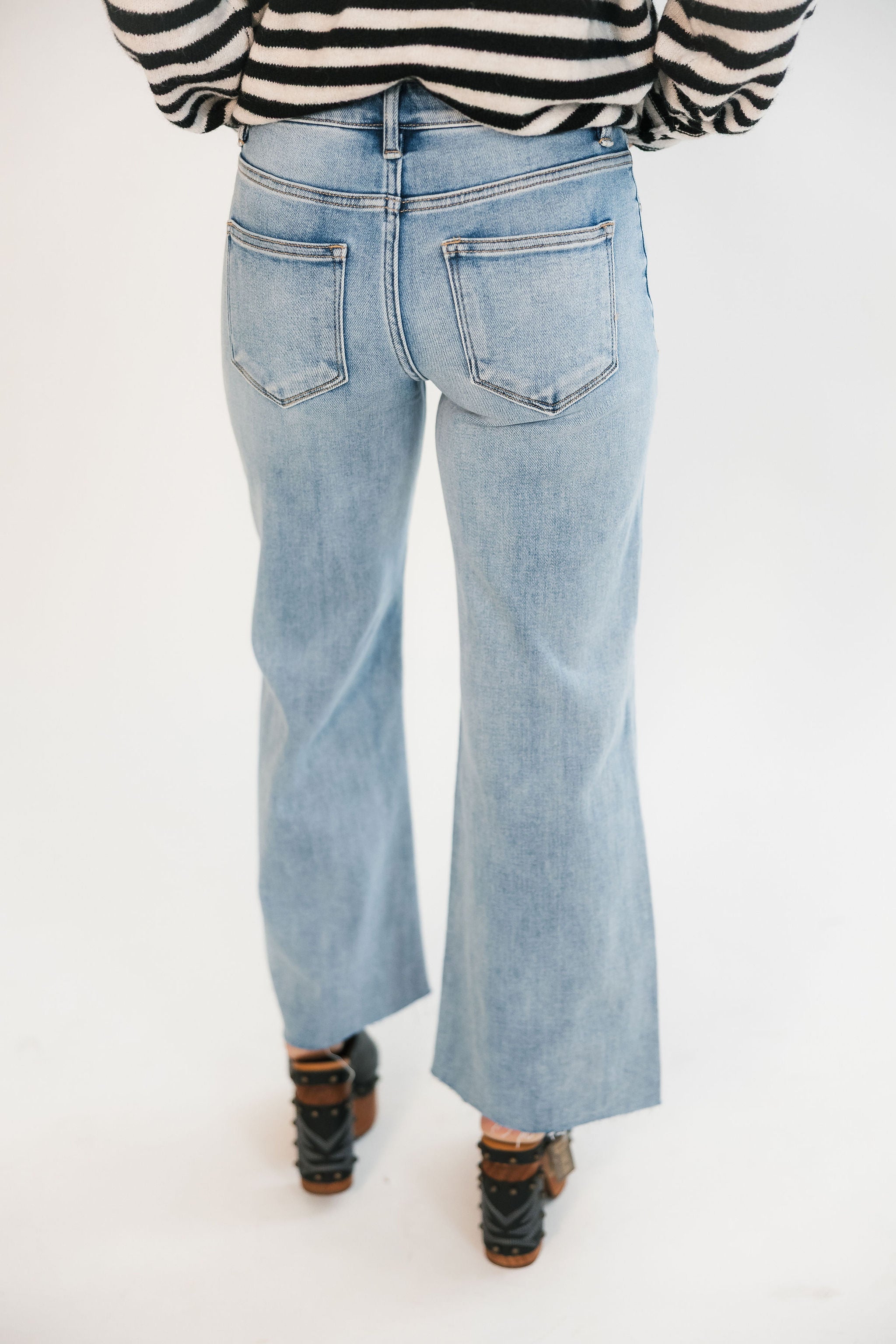 Easygoing and effortlessly cool, these mid-rise jeans feature a wide-leg silhouette and a lightly faded wash for that perfect worn-in vibe. The cropped length and raw hem add a touch of edge, making them a versatile piece for year-round styling.