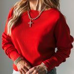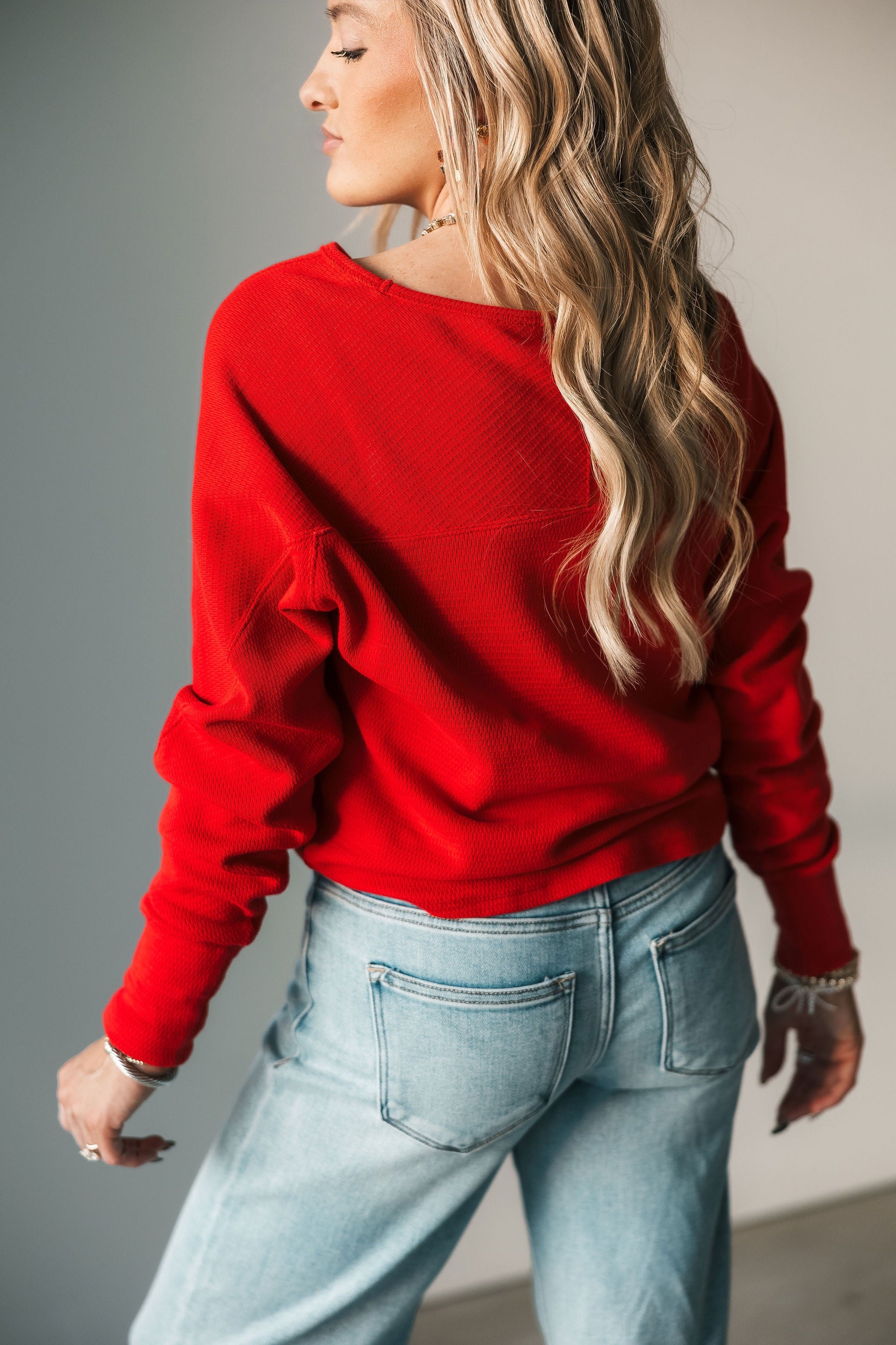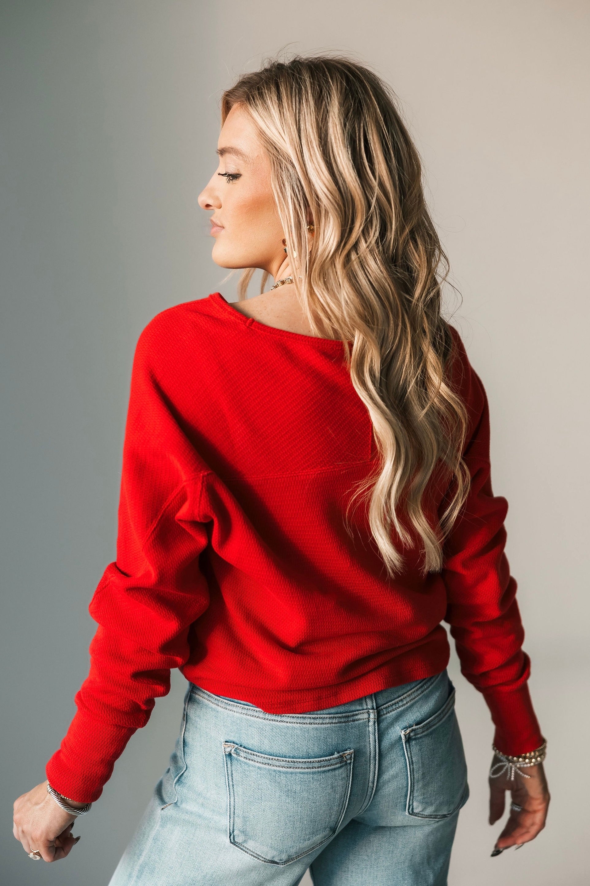 A cozy base for endless outfitting, this long sleeve from We The Free is featured in a thermal fabrication with a flattering boat neckline and slouchy dolman sleeves. Lexi is wearing an xs.