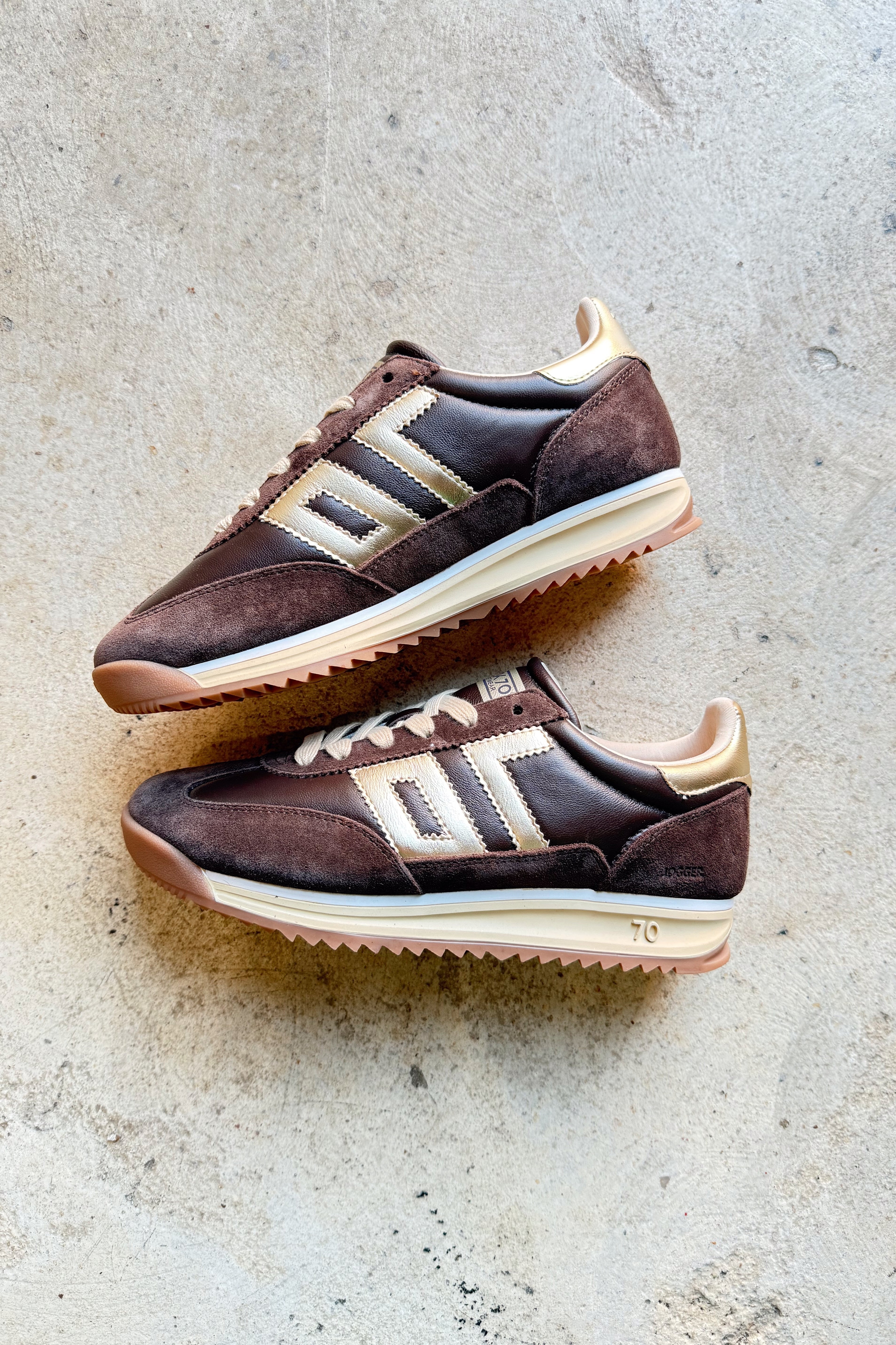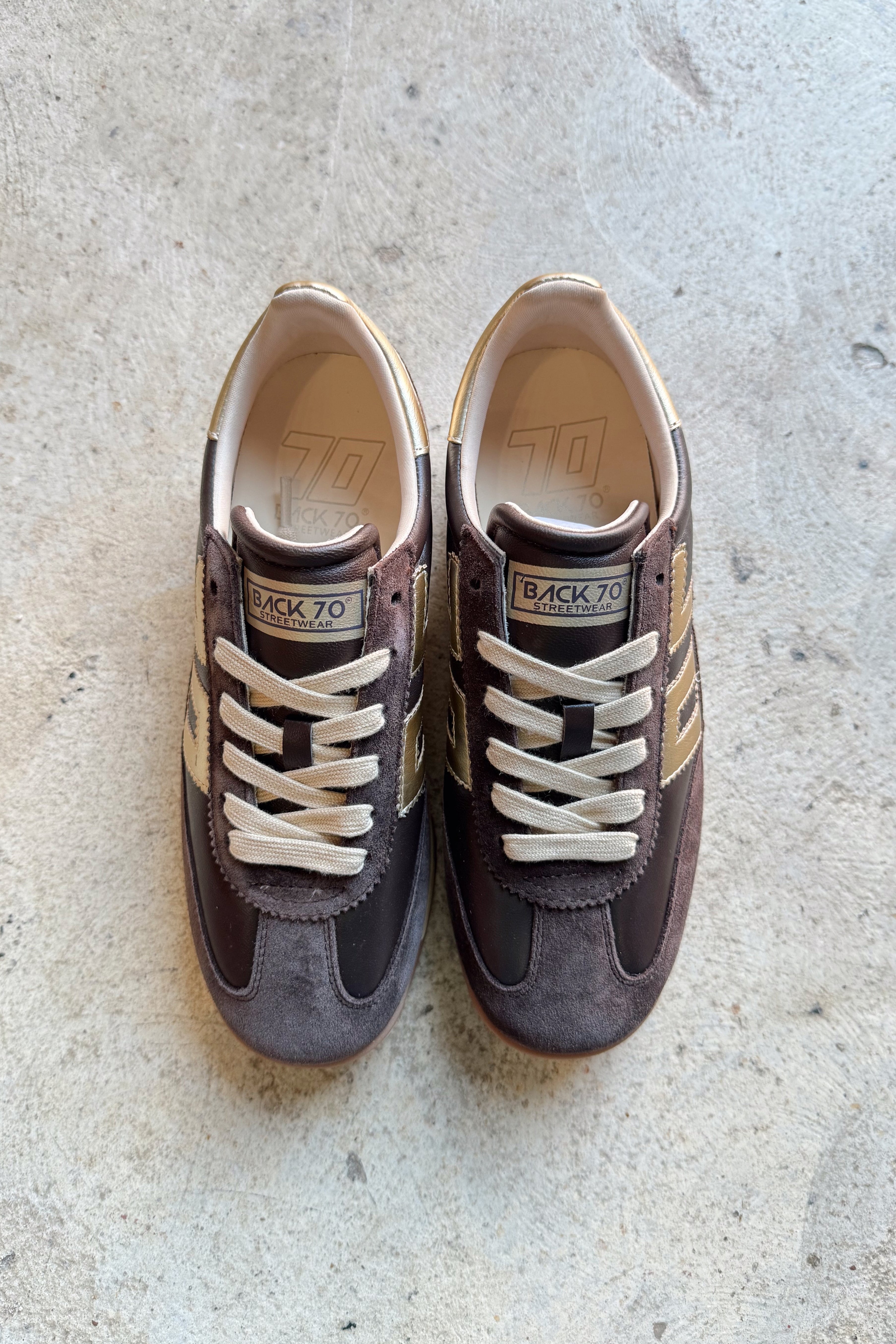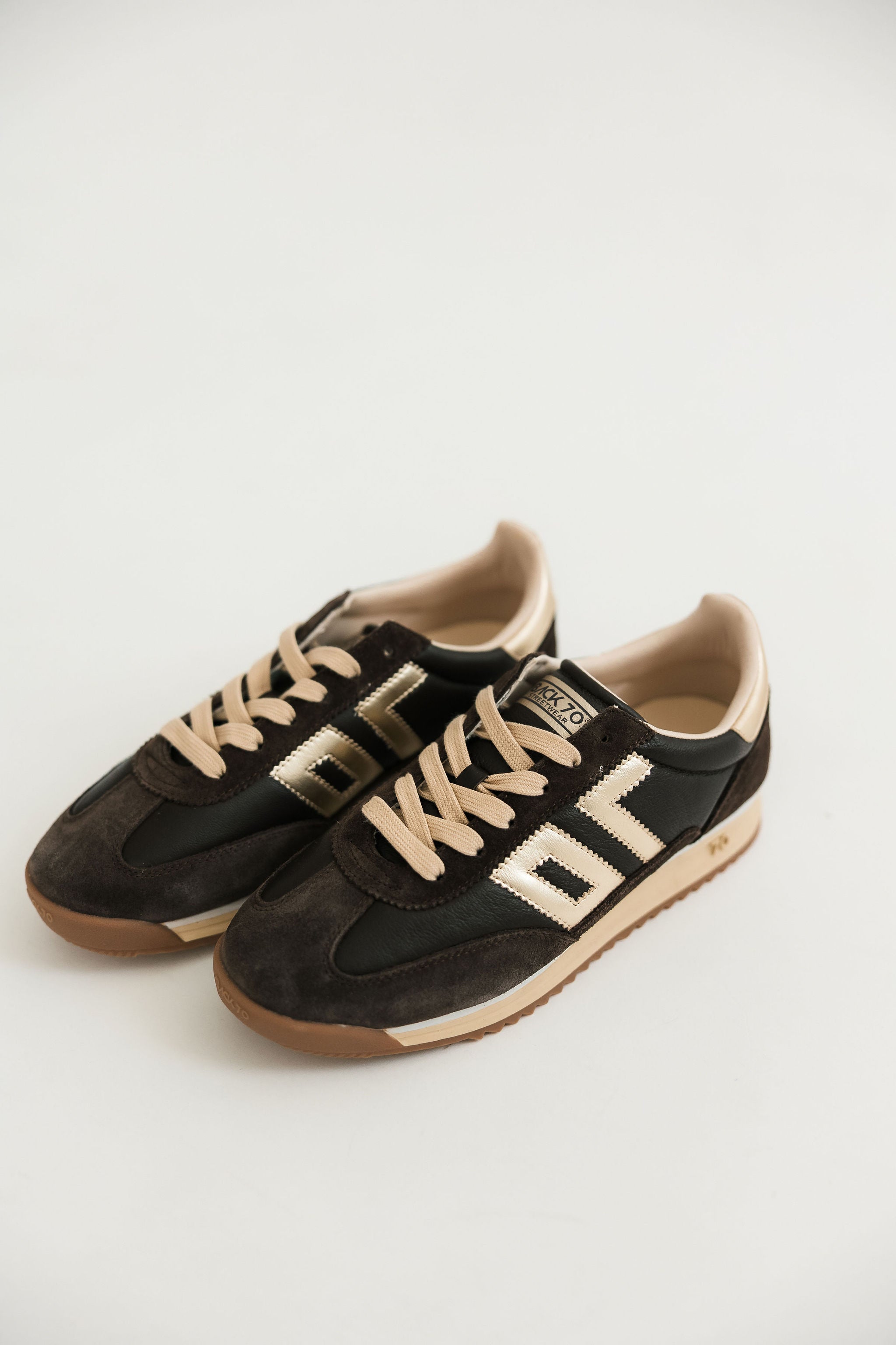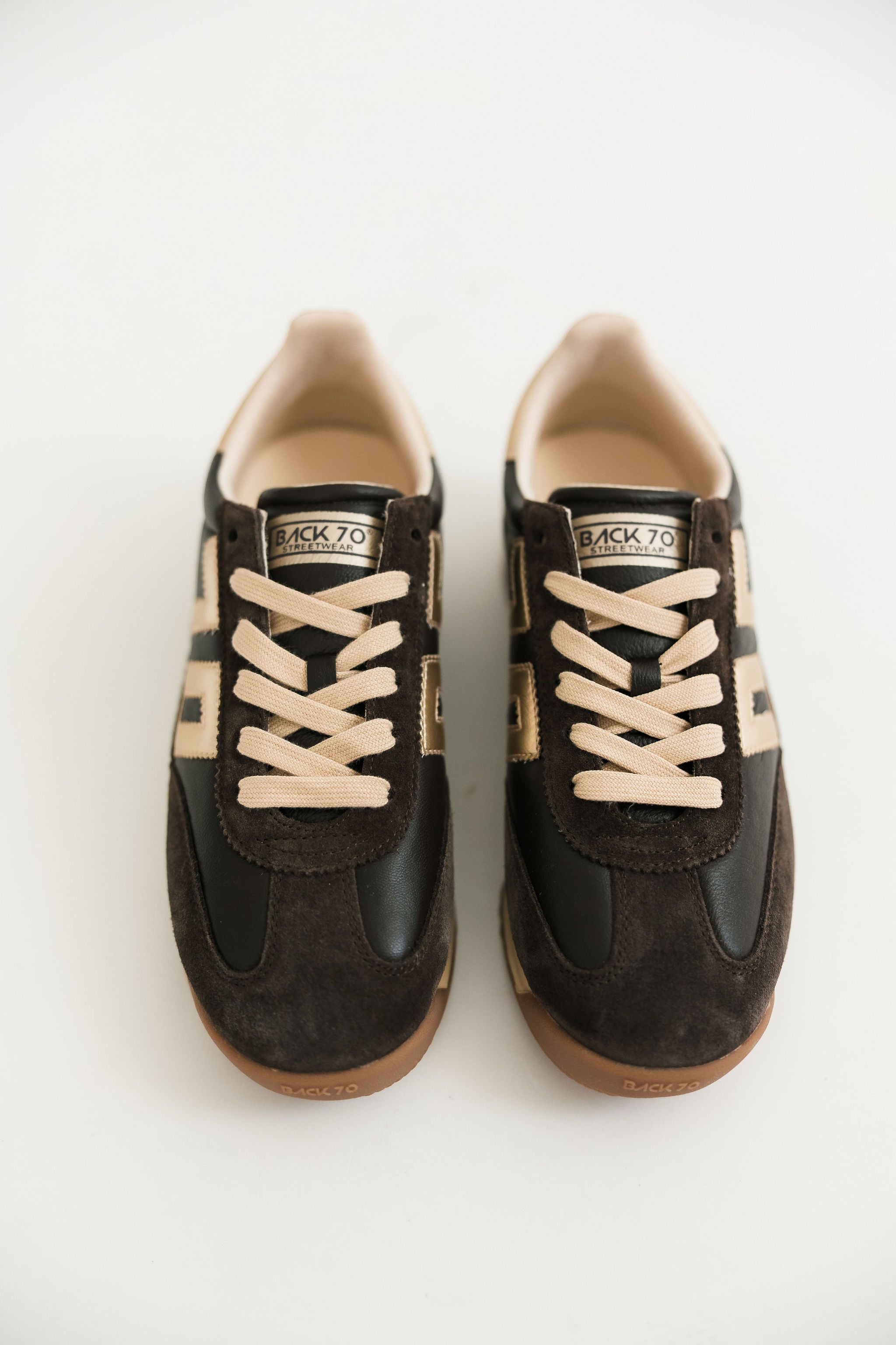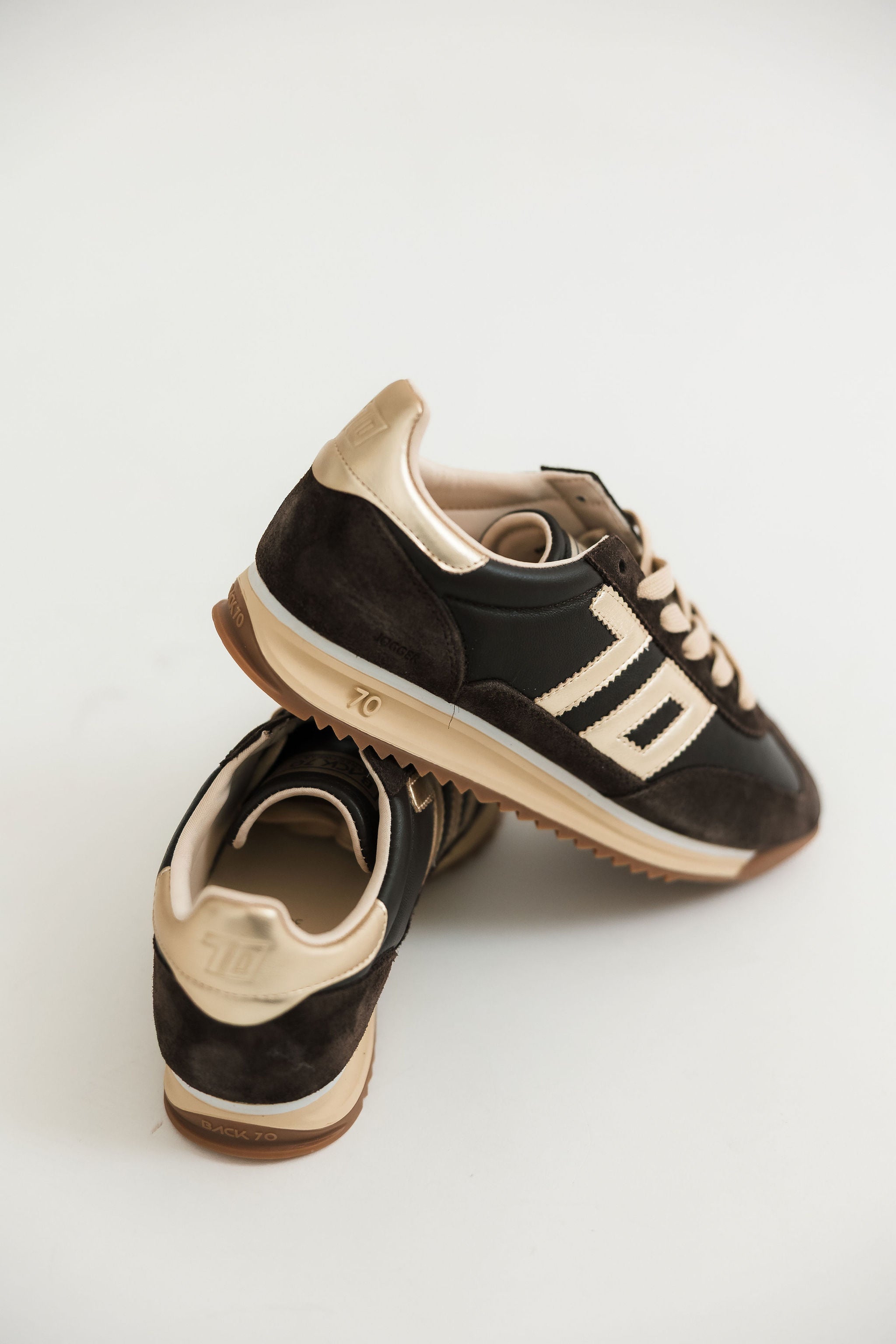 Meet the Jogger N - designed in dark, moody neutrals with luxe metallic gold Back 70 branding, this pair delivers understated glam with serious comfort. A low platform, lightweight build, and heritage icon keep things retro-cool and effortlessly wearable. Perfect for women searching for high-end sneakers with rich gold touches that move from street to soirée without skipping a beat.