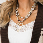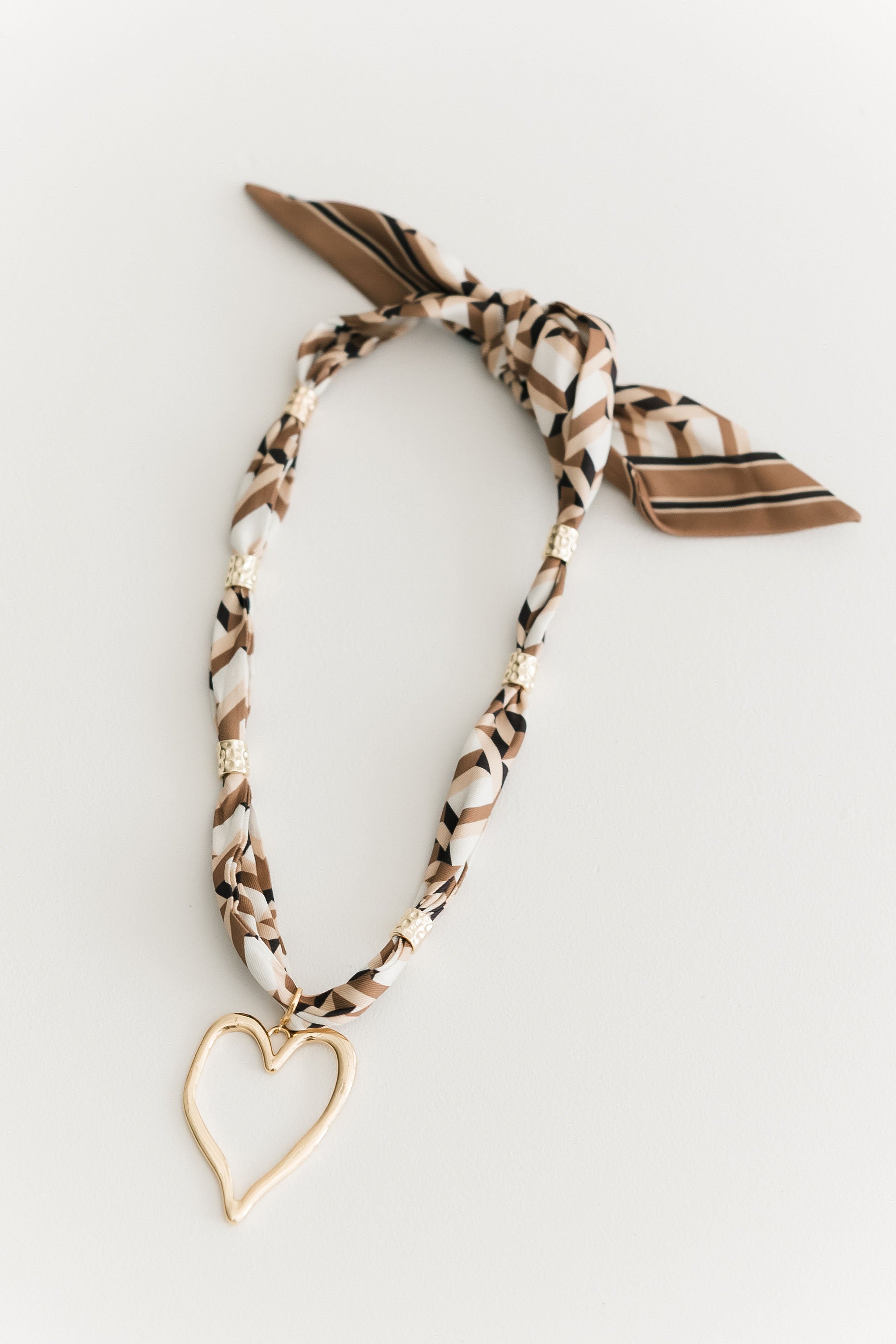 The Josie Brown & Tan Scarf Necklace With Jumbo Heart blends soft, earthy hues with a playful oversized heart charm for a look that’s both cozy and elevated. Designed with smooth, lightweight scarf-style fabric and glossy beads, it drapes beautifully and adds instant interest to any outfit. A stunning mix of neutral tones and standout charm — effortless to style and impossible to miss.