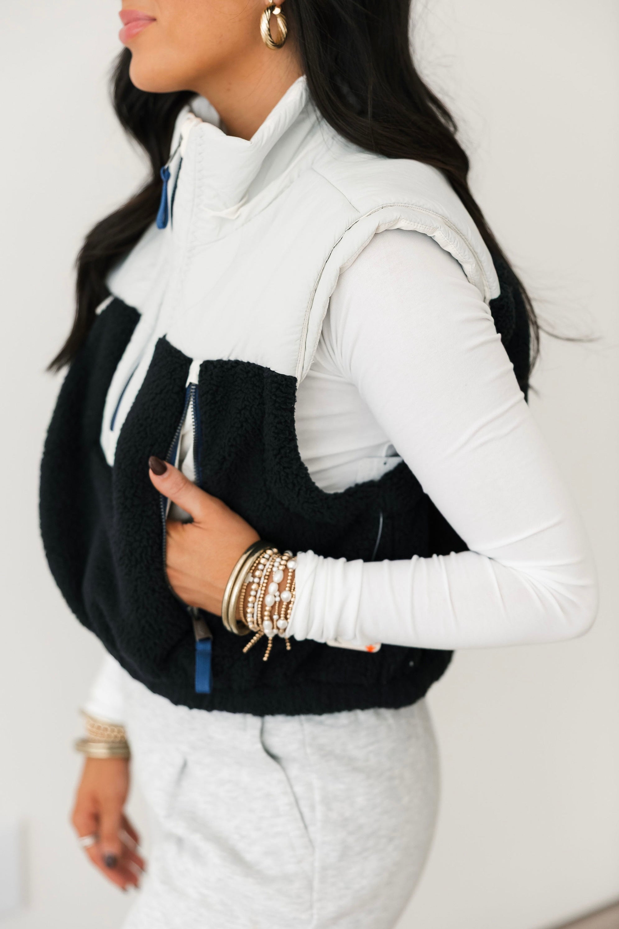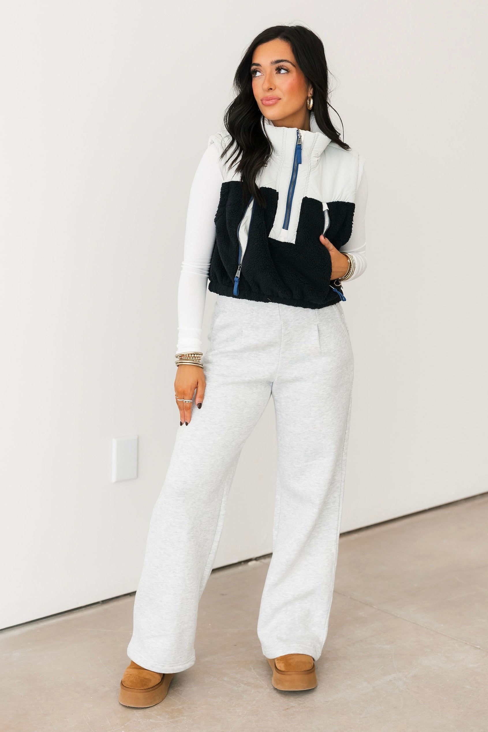 - Why We ❤ It: Cropped, cozy, and effortlessly cool, this vest adds texture and warmth to any layered look. The sherpa detailing and boxy fit give it a laid-back, modern vibe.