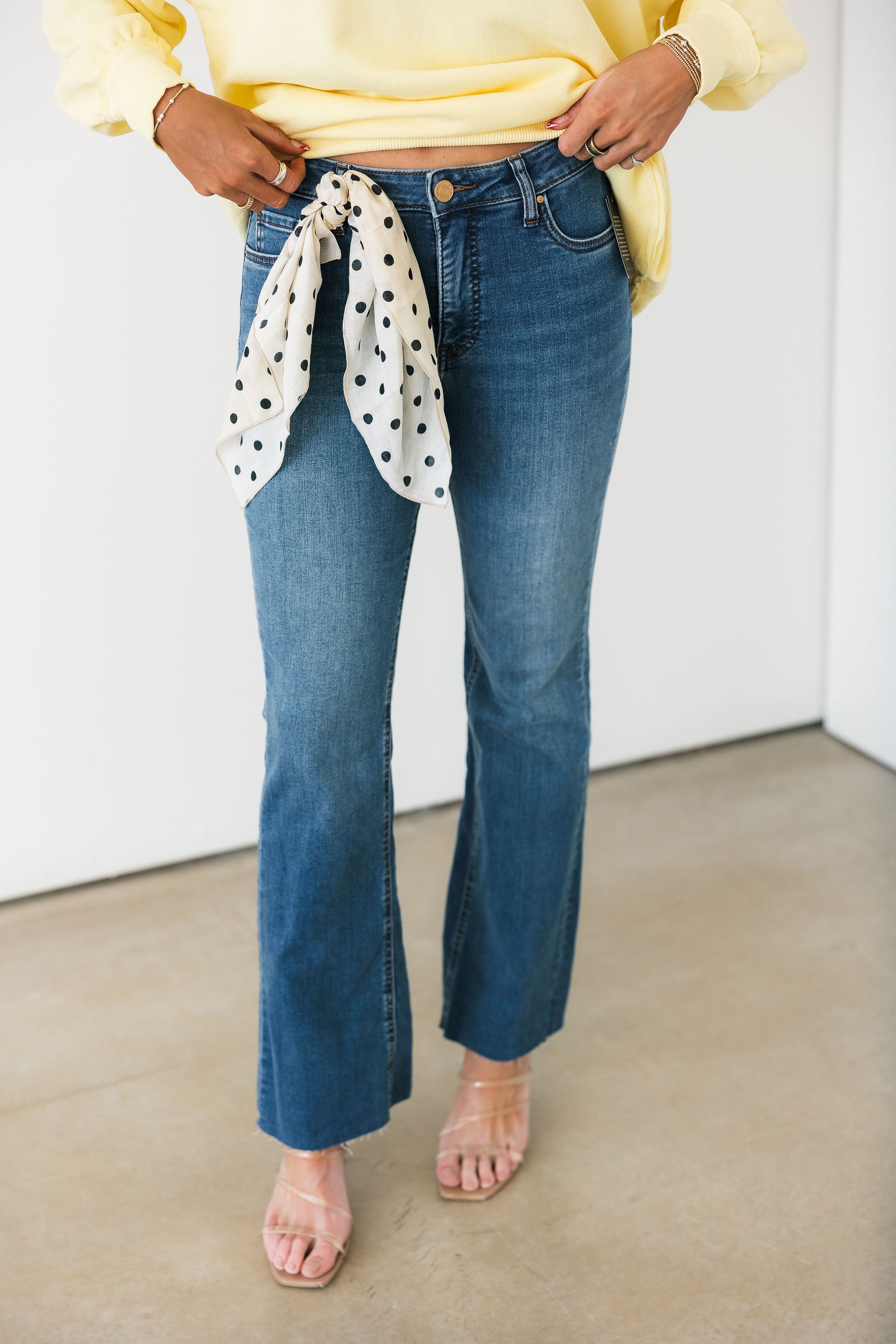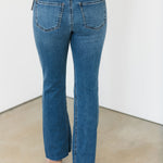 A fresh take on classic denim. These high rise jeans feature a subtle ankle kick flare and a sleek inset leg detail that elongates the silhouette. Designed in a dark wash with Fab Ab pockets for a smoothing fit, plus stretchy material that moves with you all day.