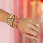 The TOVA Kennedy Cuff in Pink features a sleek, polished finish in a vibrant pink hue. Its simple, versatile design makes it perfect for layering with other bracelets or wearing solo for a subtle statement. A sweet, stylish addition to any outfit—especially for Valentine’s season.