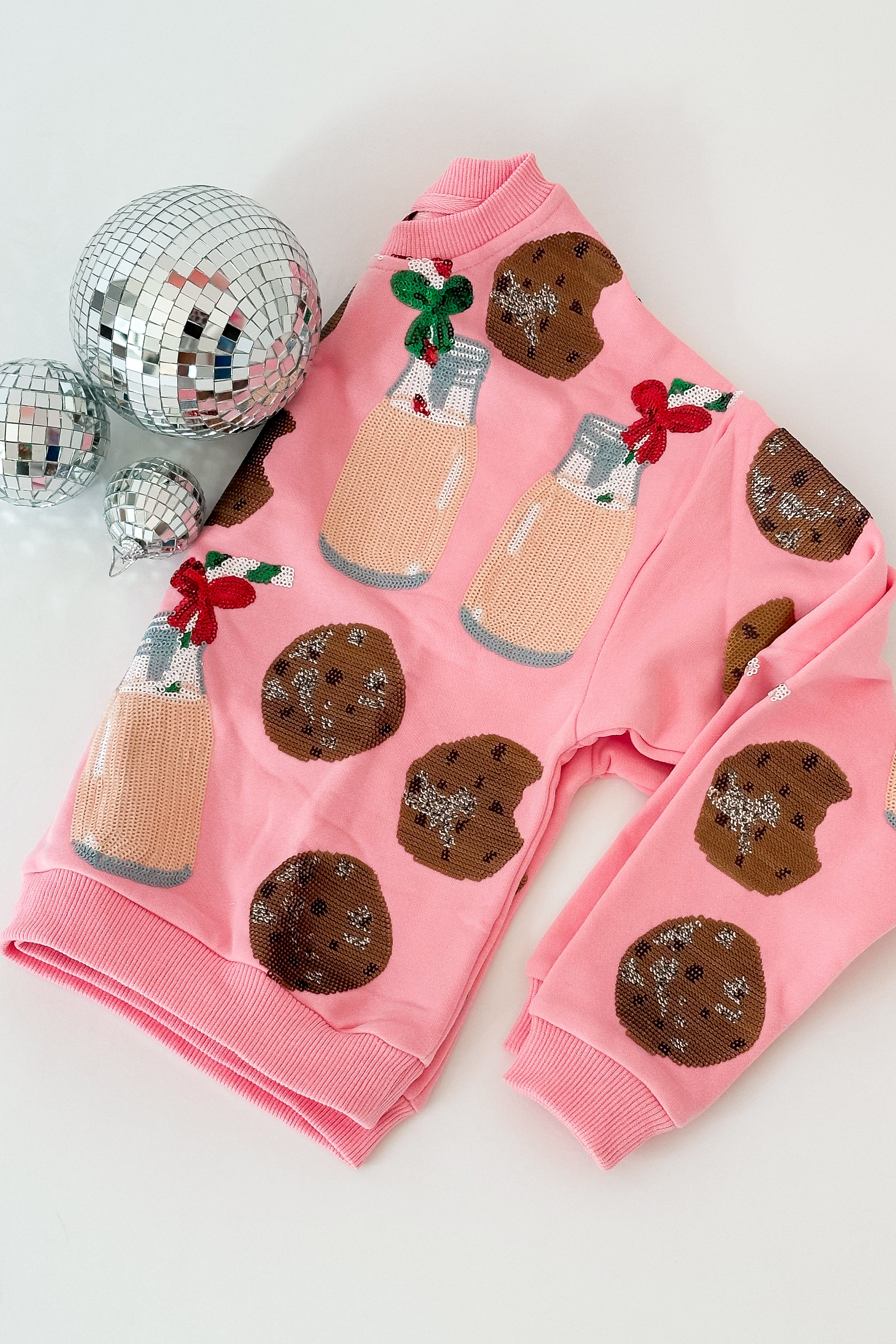 KIDS Light Pink Milk & Cookies Sweatshirt | Queen Of Sparkles