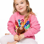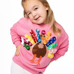 The Queen Of Sparkles KIDS Pink Rainbow Flower Turkey sweatshirt features a relaxed fit with a classic crewneck and long sleeves. Designed with a playful, sparkly turkey graphic, it brings the perfect pop of holiday cheer. A cozy, statement-making layer that’s just right for Thanksgiving celebrations and beyond.