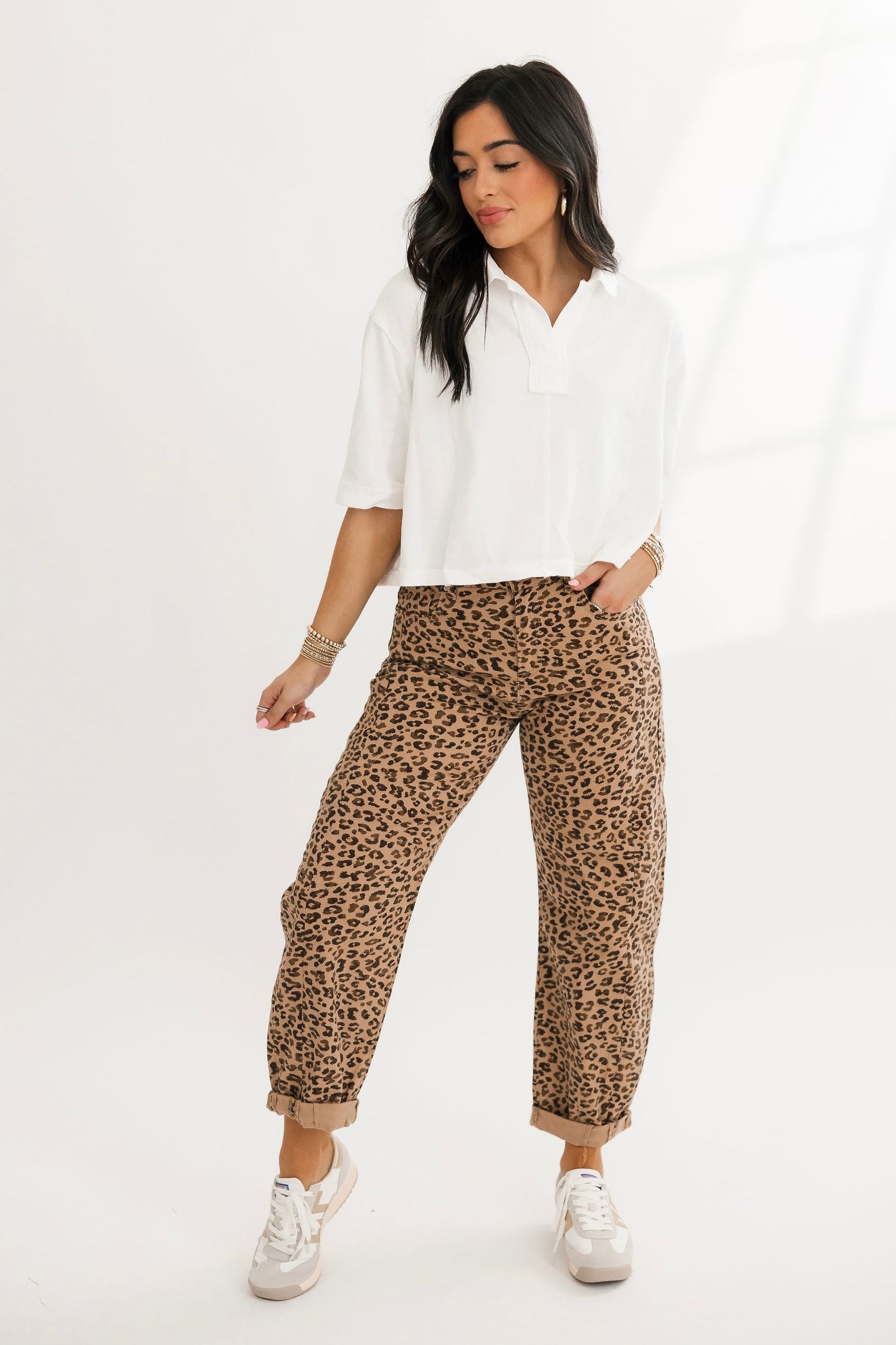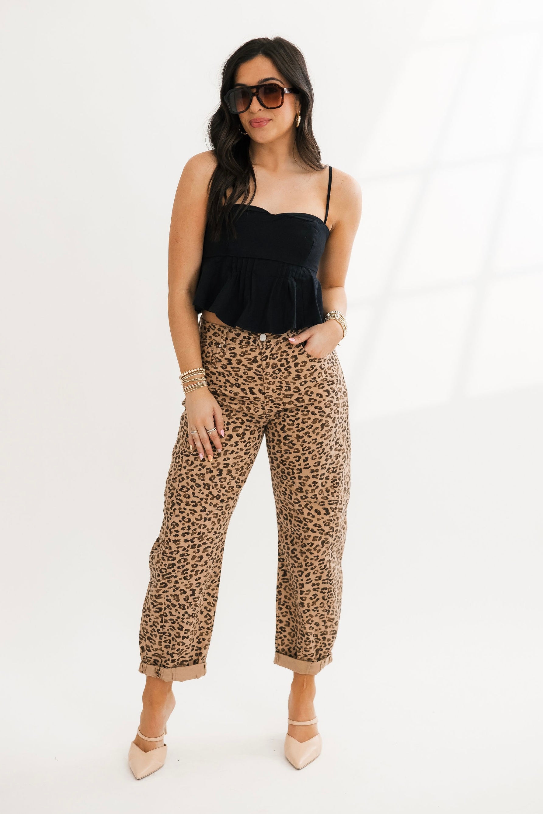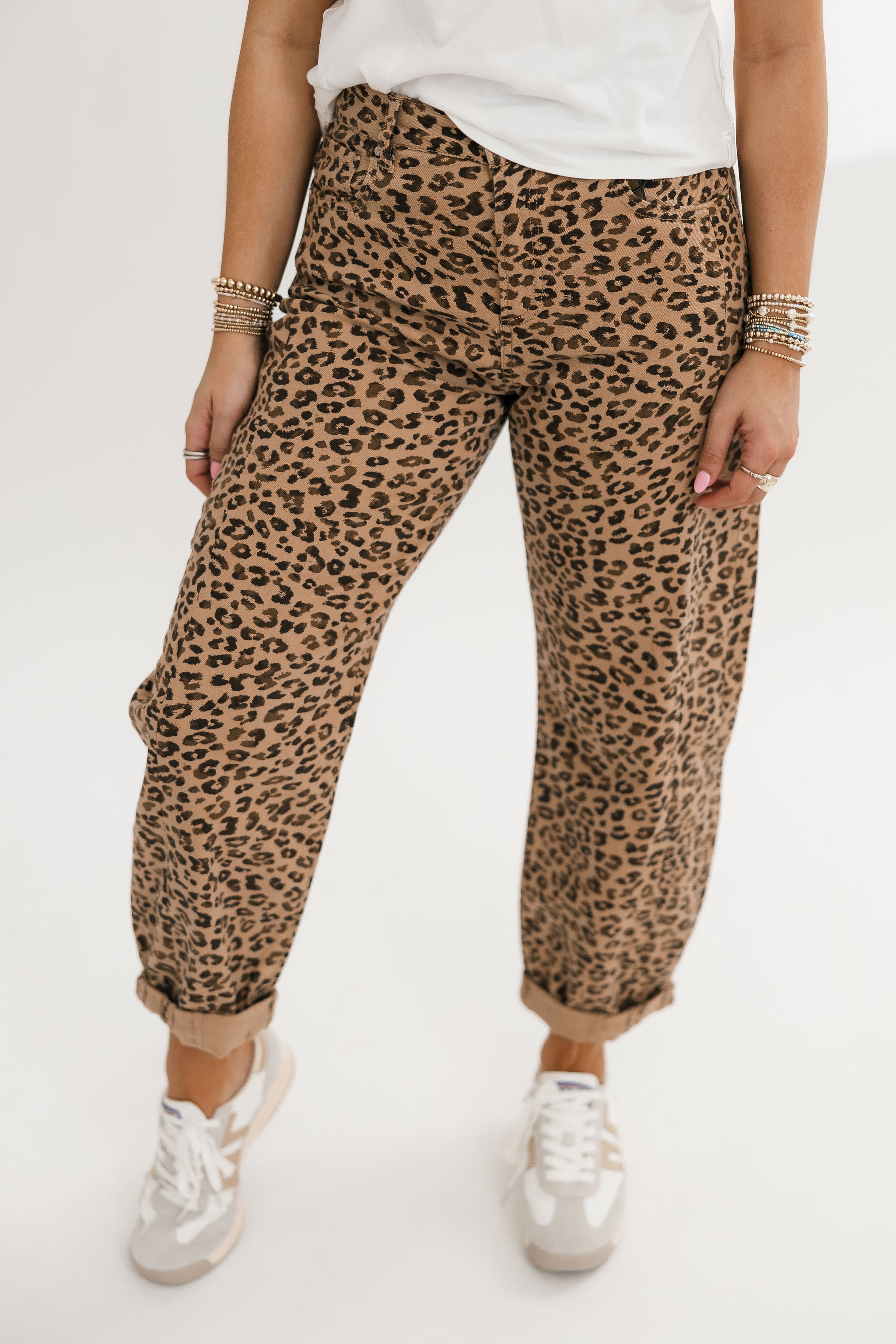 Make a statement in the Kortnee Barrel Jeans in Leopard! With their bold print and on-trend barrel leg fit, these jeans bring all the fun to your everyday denim lineup.