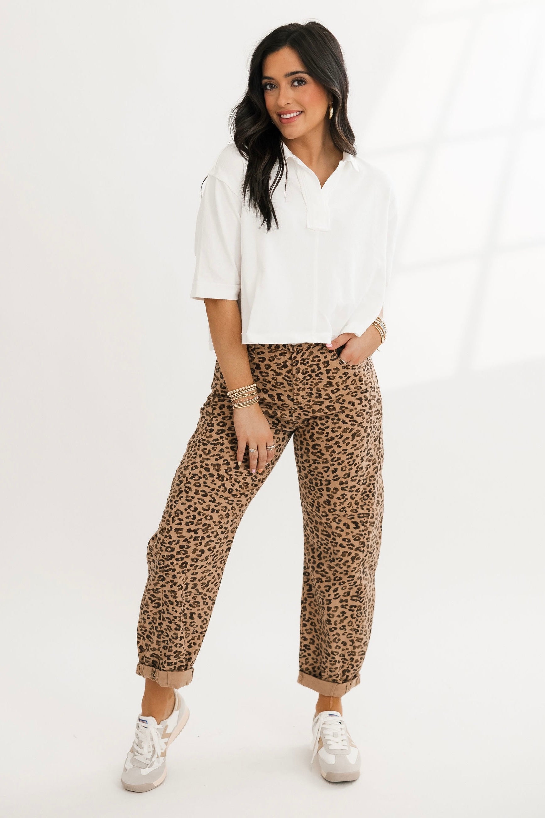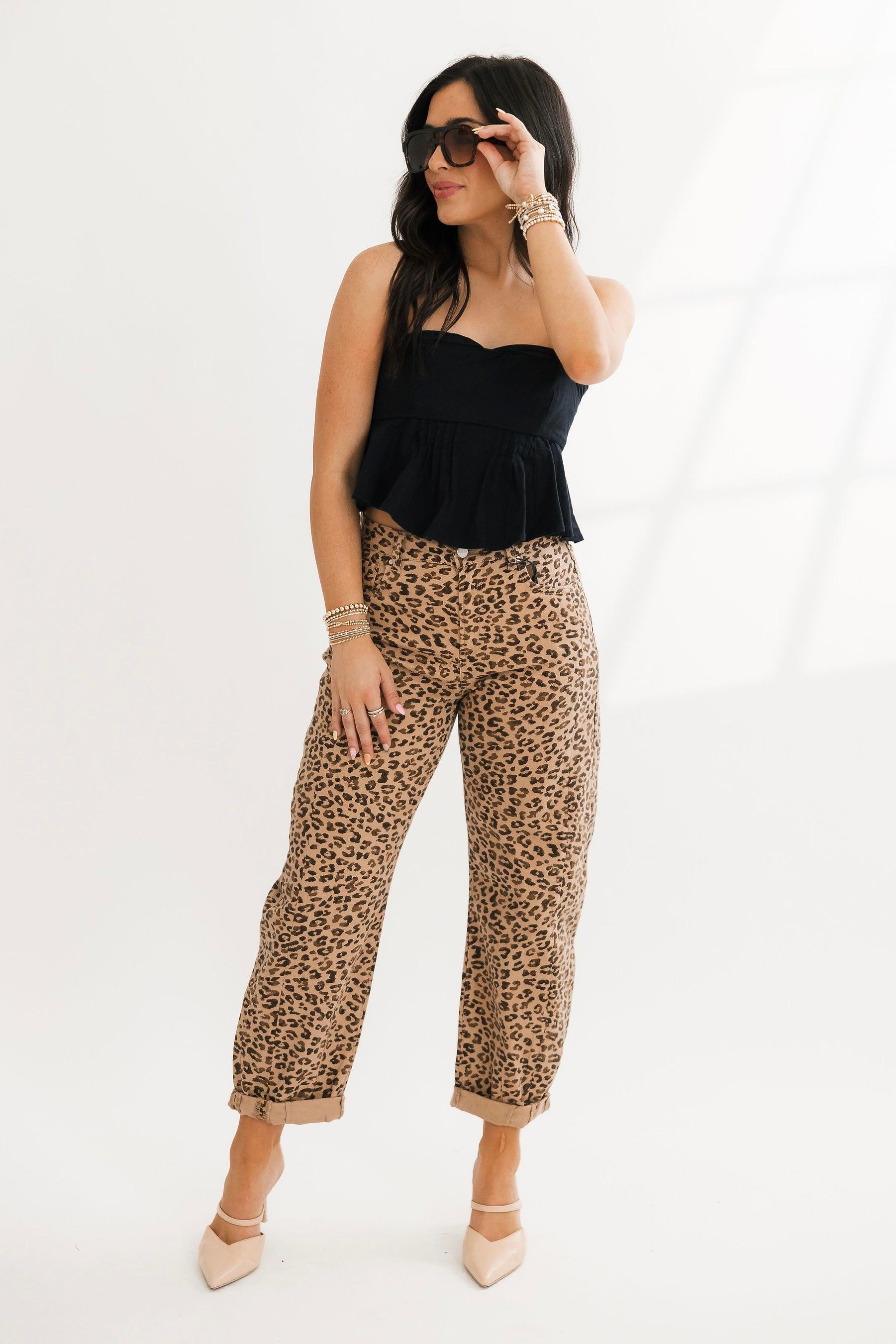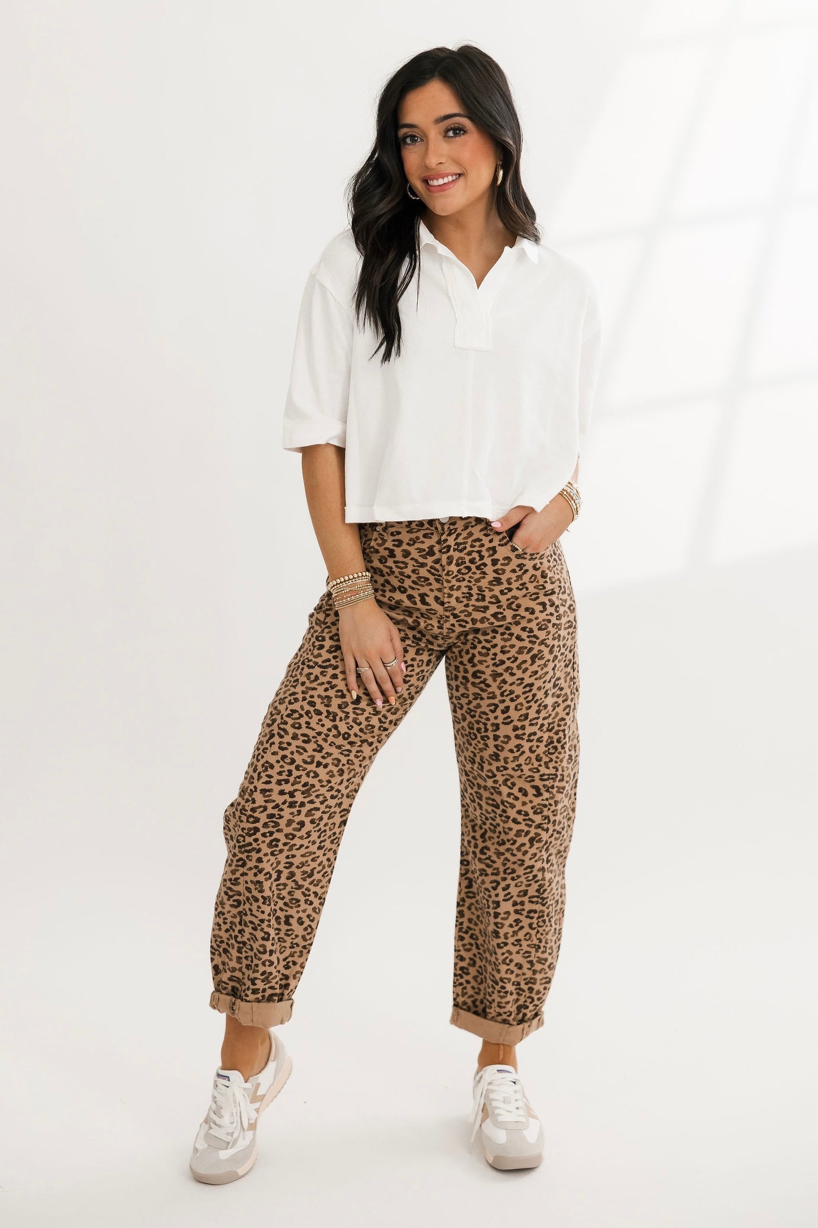 Make a statement in the Kortnee Barrel Jeans in Leopard! With their bold print and on-trend barrel leg fit, these jeans bring all the fun to your everyday denim lineup.