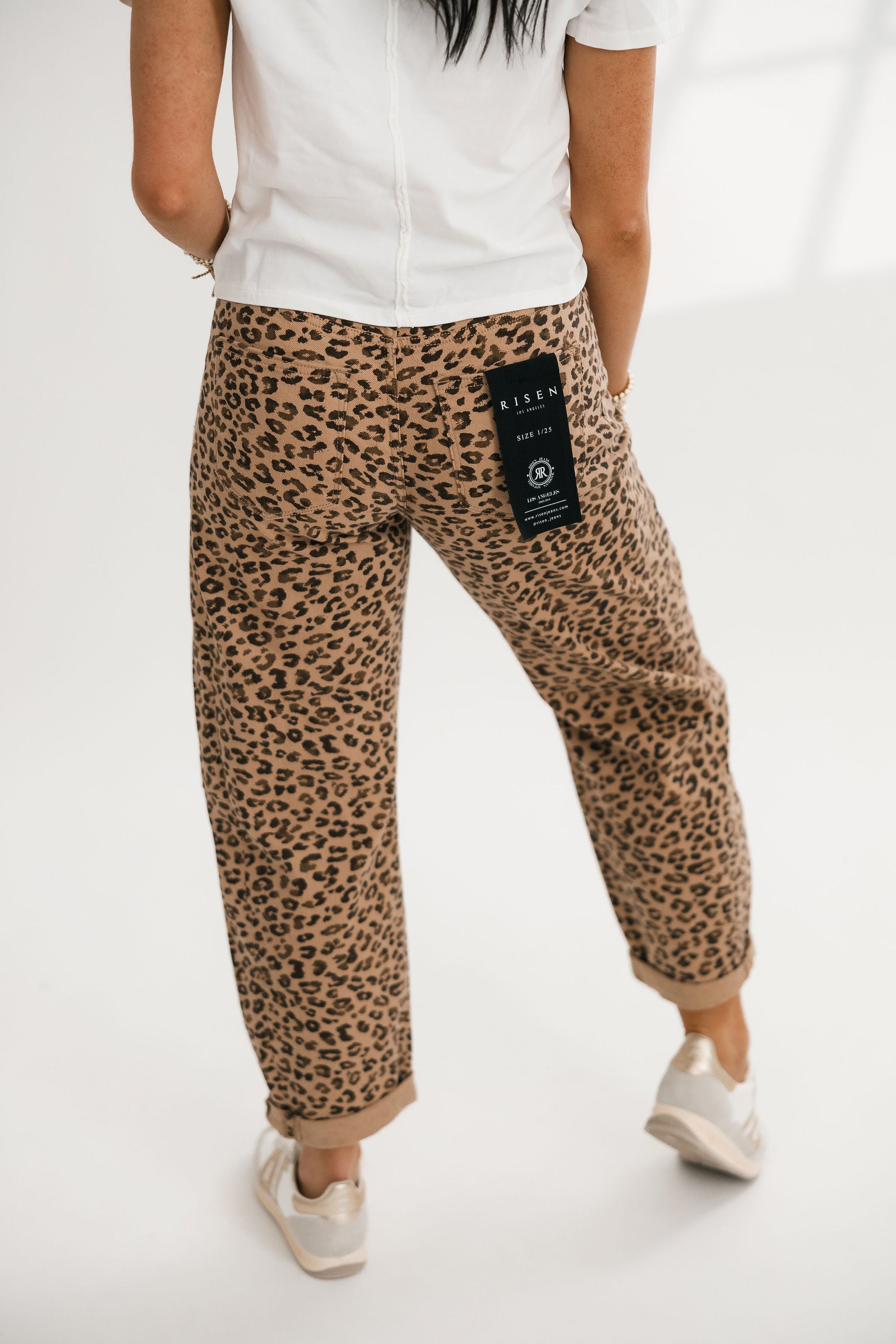 Risen Jeans Kortnee High Rise Crop Barrel Jeans In Leopard