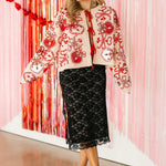 - Why We ❤ It: Delicate yet daring—this skirt brings romantic lace and a subtle slit together for an effortlessly chic Valentine’s look.