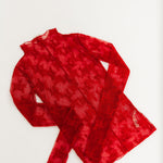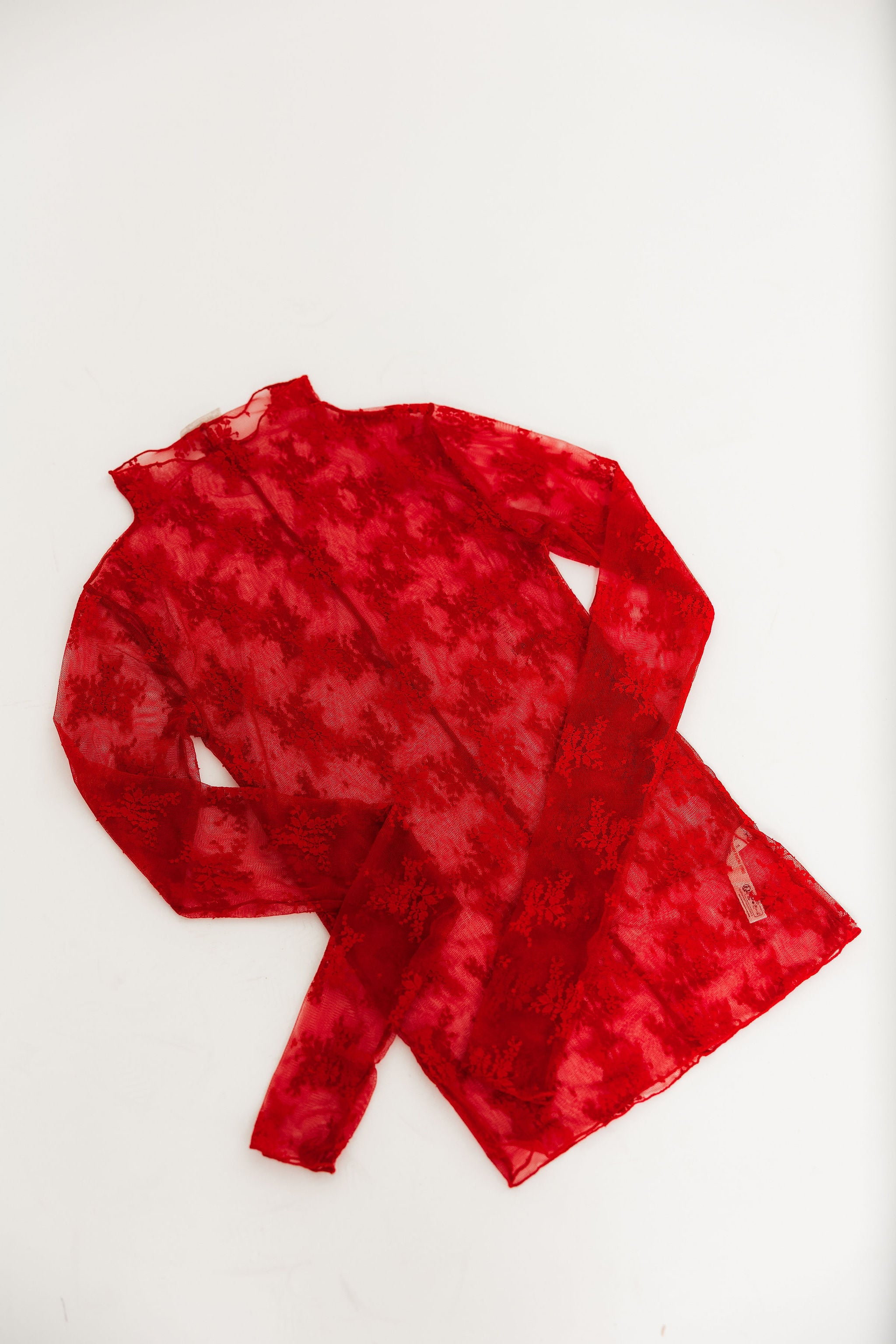 Your new fav layering top: This sheer long sleeve from FP Intimately is featured in the perfect textured style with a ruffled mock neckline for a femme touch. Sage is wearing an xs.