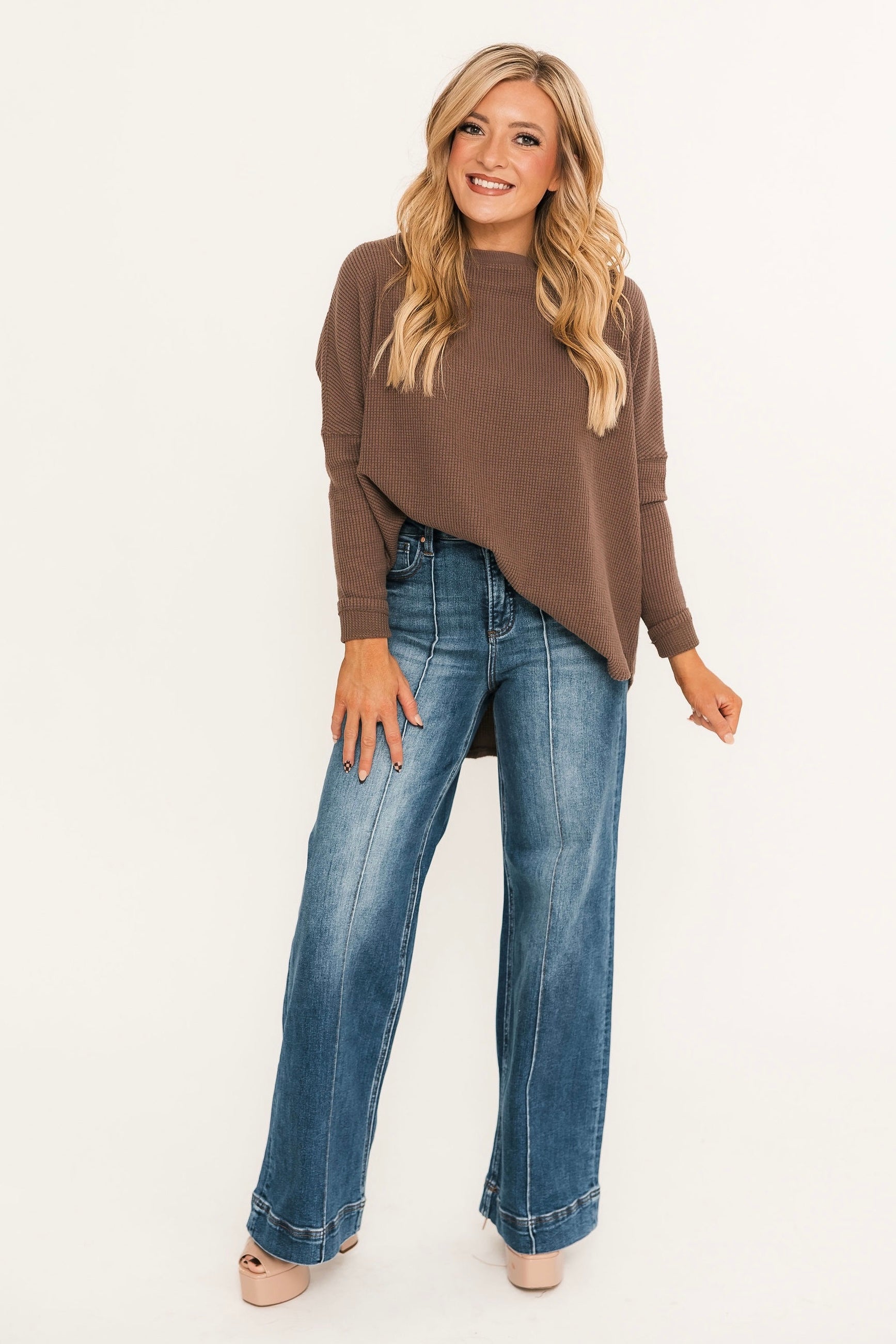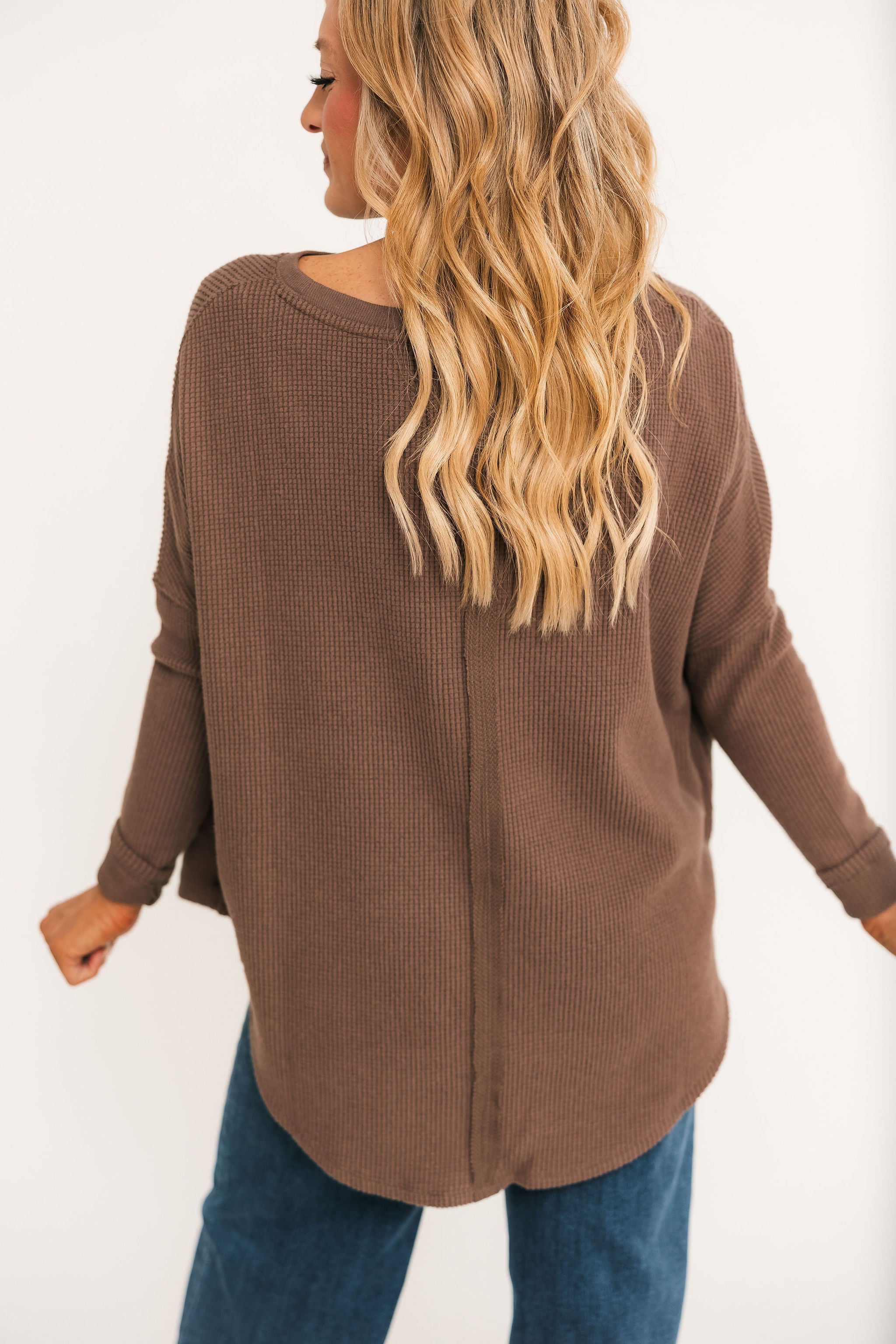 The Free People Latte Blues Thermal in Leafless Tree features a boxy fit with a boat neckline and dolman long sleeves for relaxed, easy movement. Waffle-knit fabrication adds texture and warmth, making this piece a go-to layering essential for cooler days. Comfortable, chic, and effortlessly stylish, it’s the perfect thermal to mix into your everyday wardrobe. Lexi is wearing an xs.