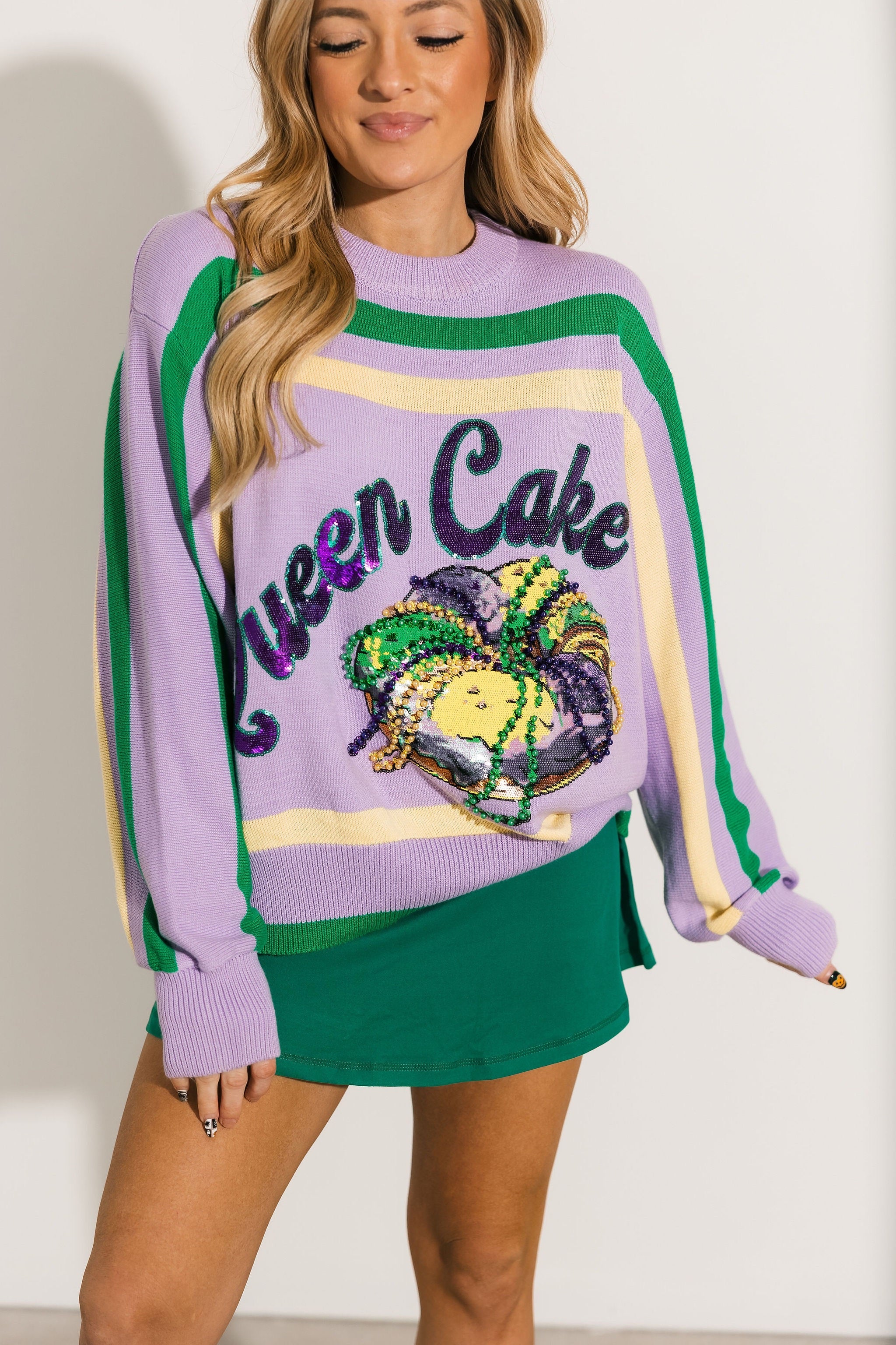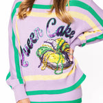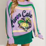 Lavender, Green & Yellow 'Queen Cake' Striped Sweater | Queen Of Sparkles