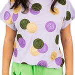 Celebrate Mardi Gras in sparkling style with this playful lavender tee. Featuring dazzling doubloon graphics and a relaxed fit, it’s the perfect blend of festive charm and everyday comfort—ideal for parades, parties, or adding a touch of carnival fun to your wardrobe.