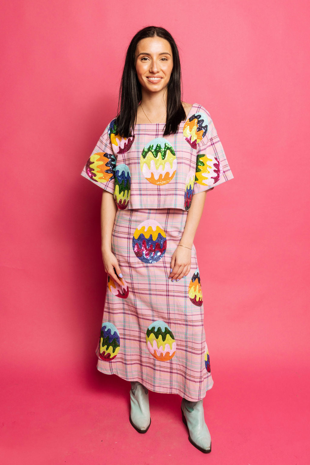 Lavender Plaid Groovy Easter Egg Cotton Top | Queen Of Sparkles
