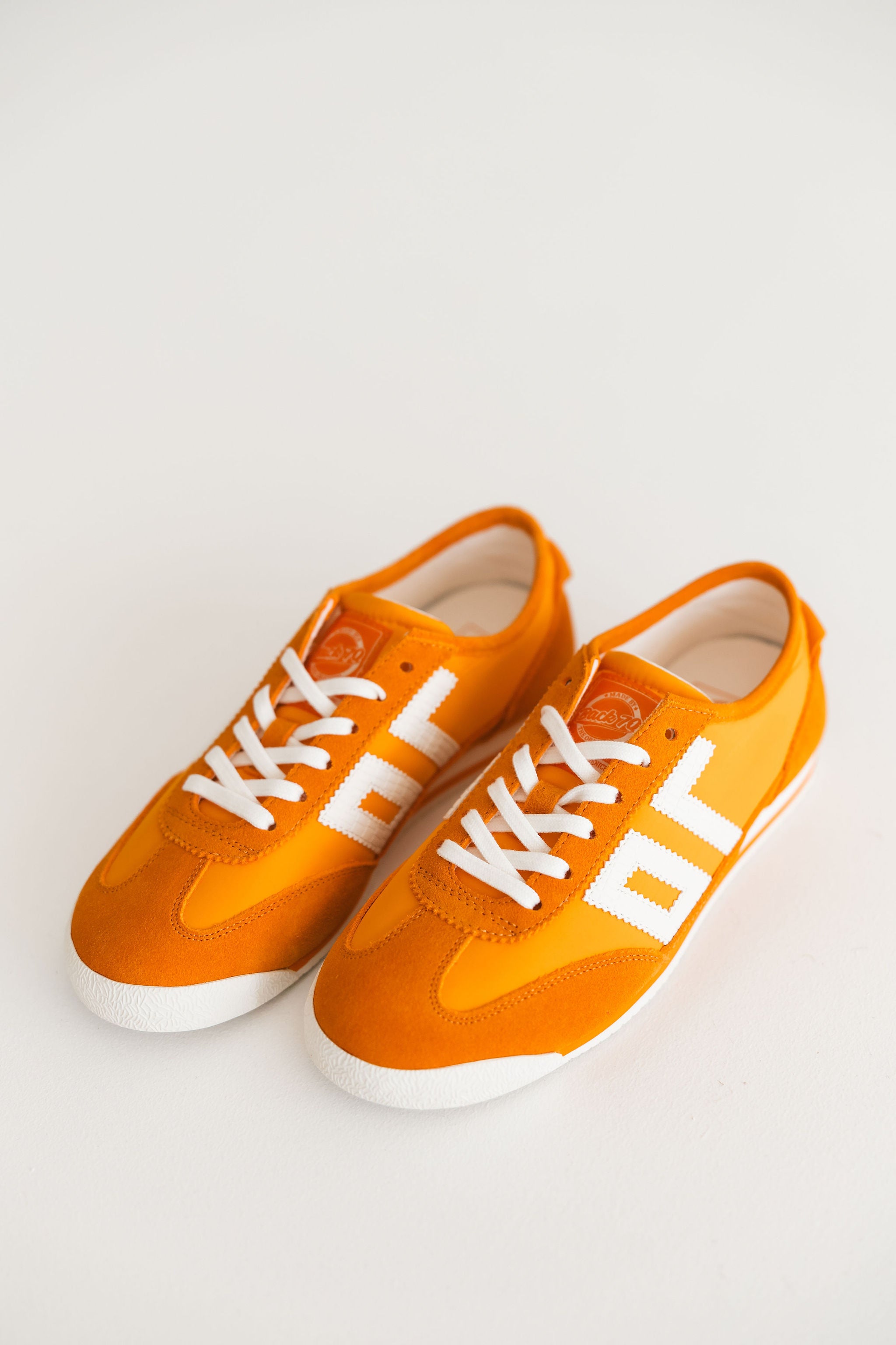 Create your casual aesthetic in Leon - a retro sneaker that pays homage to nostalgia in an interactive and fluid art form. Heavy on retro charm, Leon is easy to adapt into a universal range of design combinations from casual sportswear to sophisticated heritage-inspired styles. Hand crafted in small batches with luxurious quality suedes, classic woven cotton laces as well as a contrasting fashion cord for personalization, and Back 70's iconic emblem and signature logo patch.