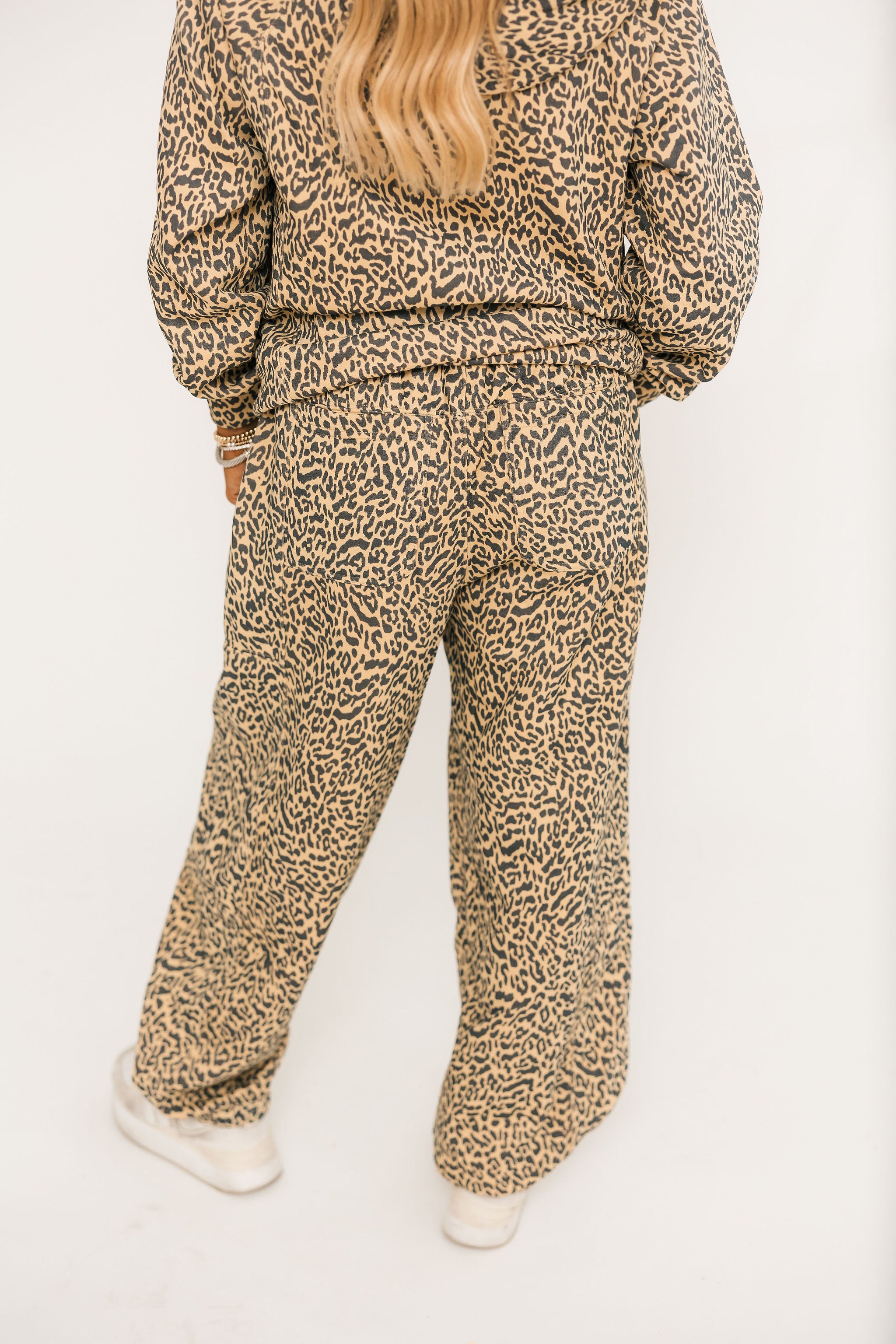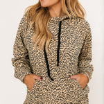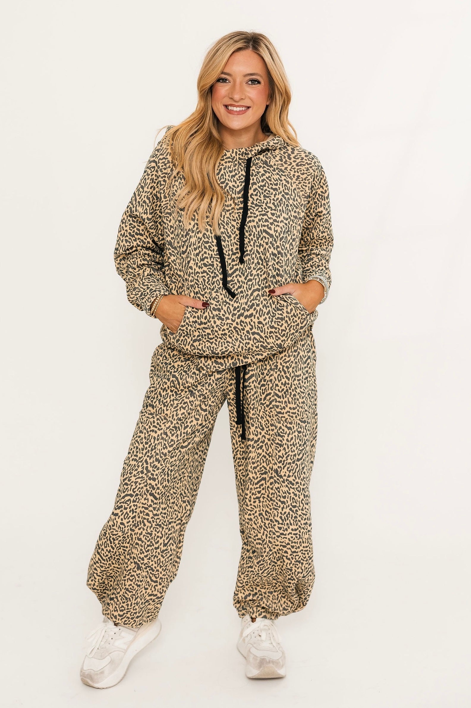 This relaxed-fit leopard print hoodie features a soft brushed fabric, cozy front pocket, and adjustable drawstrings—perfect for pairing or wearing solo. Lexi is wearing a small.