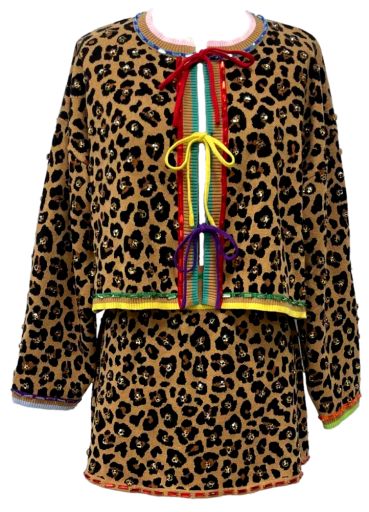 Leopard Multi Tie Rhinestone Sweater | Queen Of Sparkles