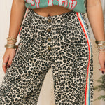 The Leopard Stripe Pants bring an effortless edge to your everyday look. Designed with a relaxed, billowy fit and statement side stripe detailing, these pants blend bold print with laid-back comfort for a look that stands out without trying too hard. Sage is wearing a small.